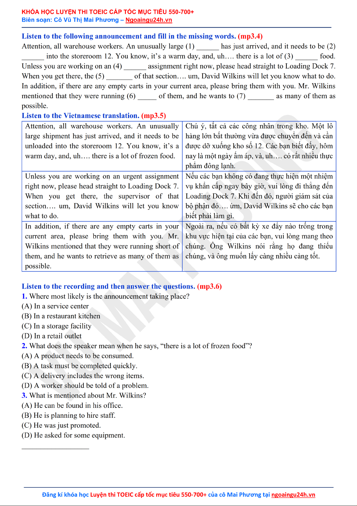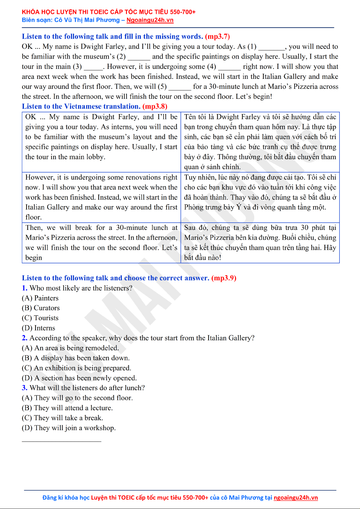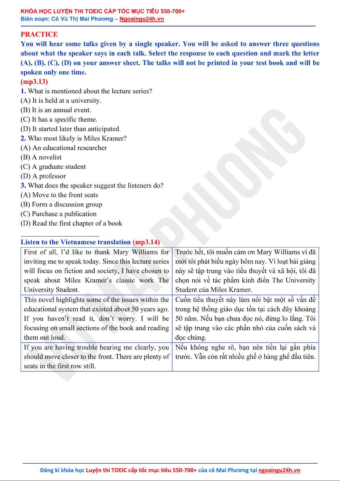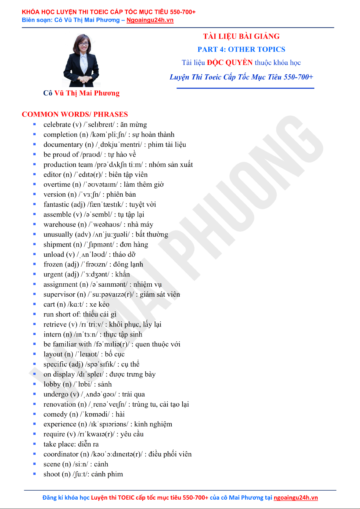 Part 4: othert opics | Tài liệu luyện thi Tiếng anh cô Mai Phương