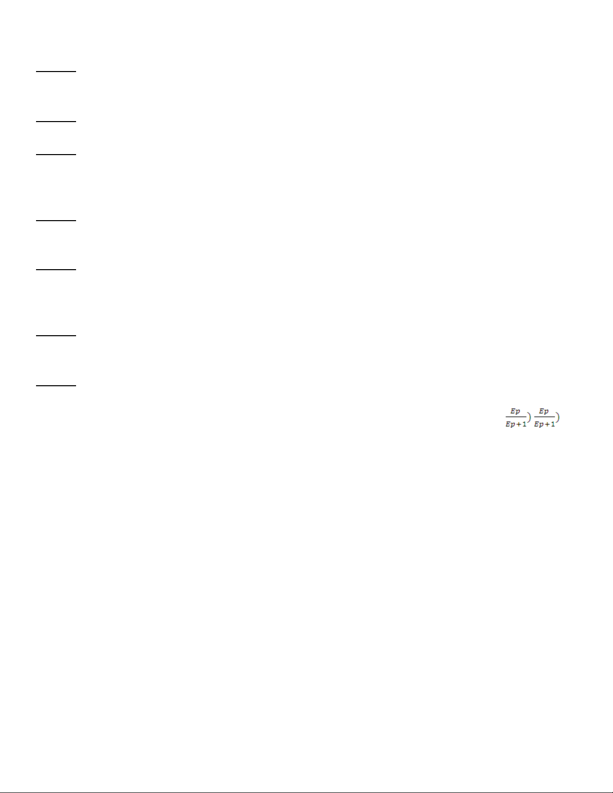 Câu 43: Doanh nghiệp tăng giá sản phẩm X lên 20%. Kết quả làm doanh thu tăng lên 8%. Vậy Ep của mặt hàng này bằng: 3 ĐỀ 1 A -1,5 B Tất cả đều sai C -5 D -0,5
