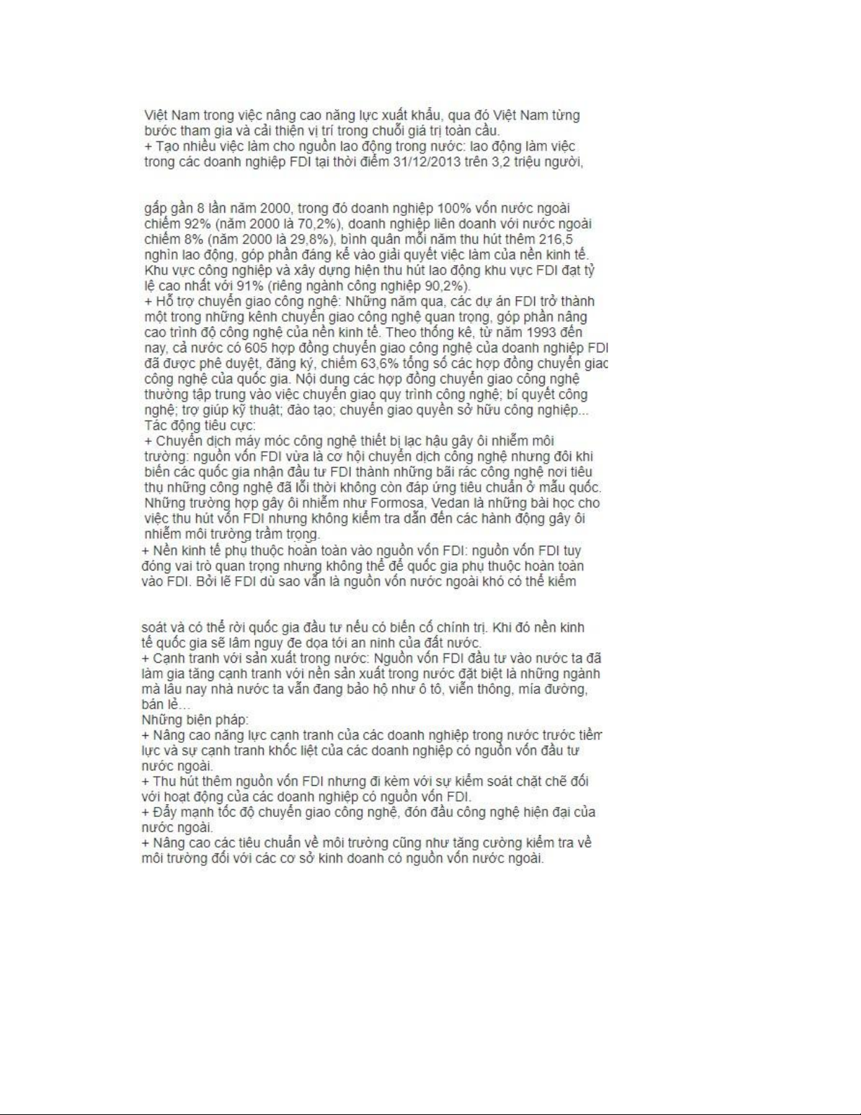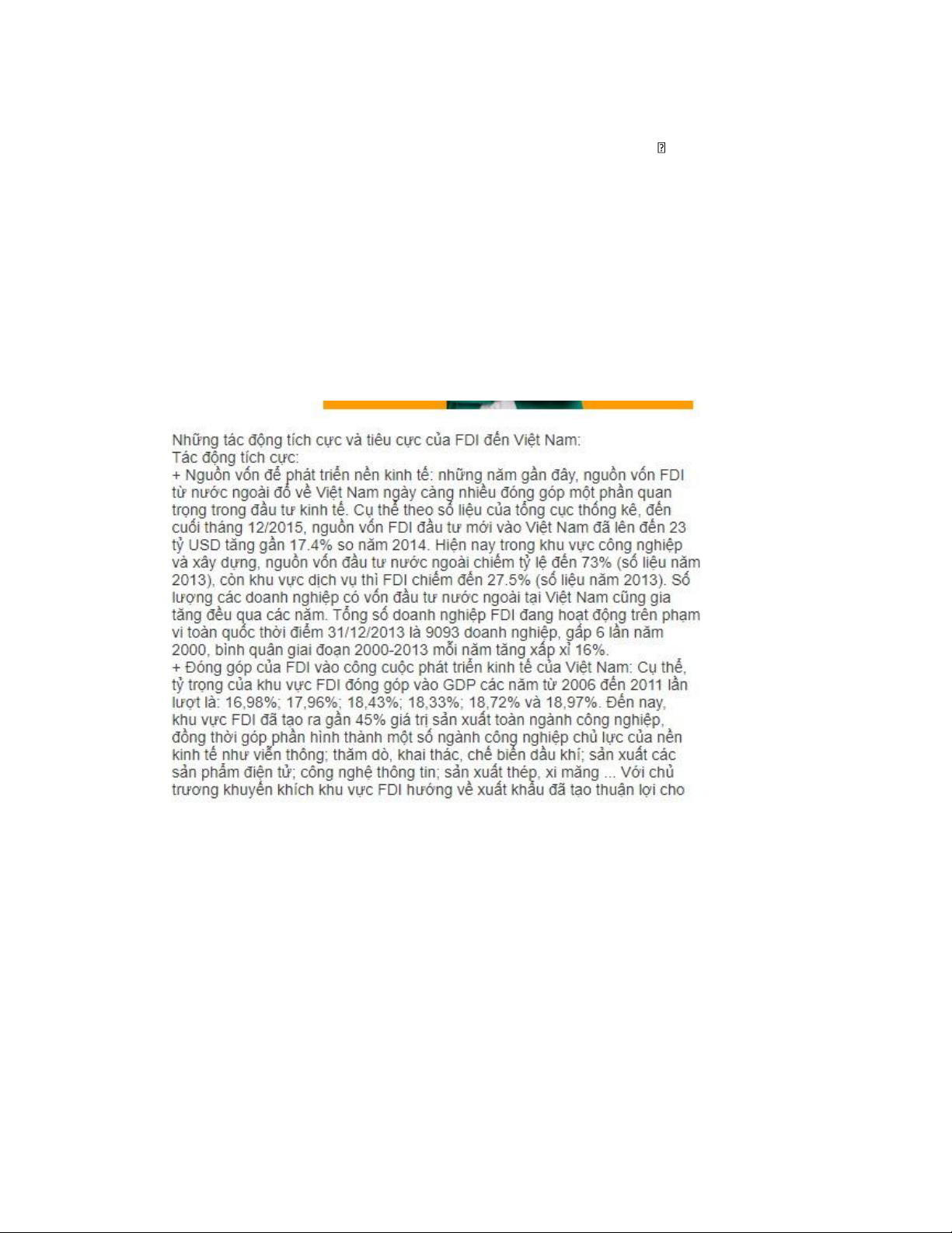 • Gia tăng khoảng cách giàu nghèo giữa các cá nhân, giữa các vùng nhận được FDI • Liên hệ Việt Nam: lOMoAR cPSD| 61260386