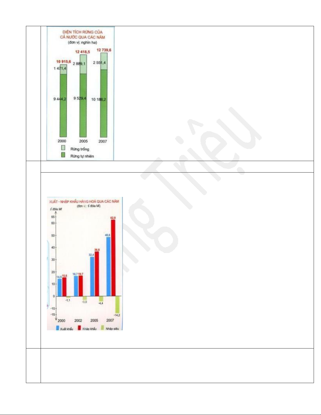 -Tương tự, độ che phủ rừng của nước ta năm 2005 là 37,5 % và năm 2007 là 38,5 %.