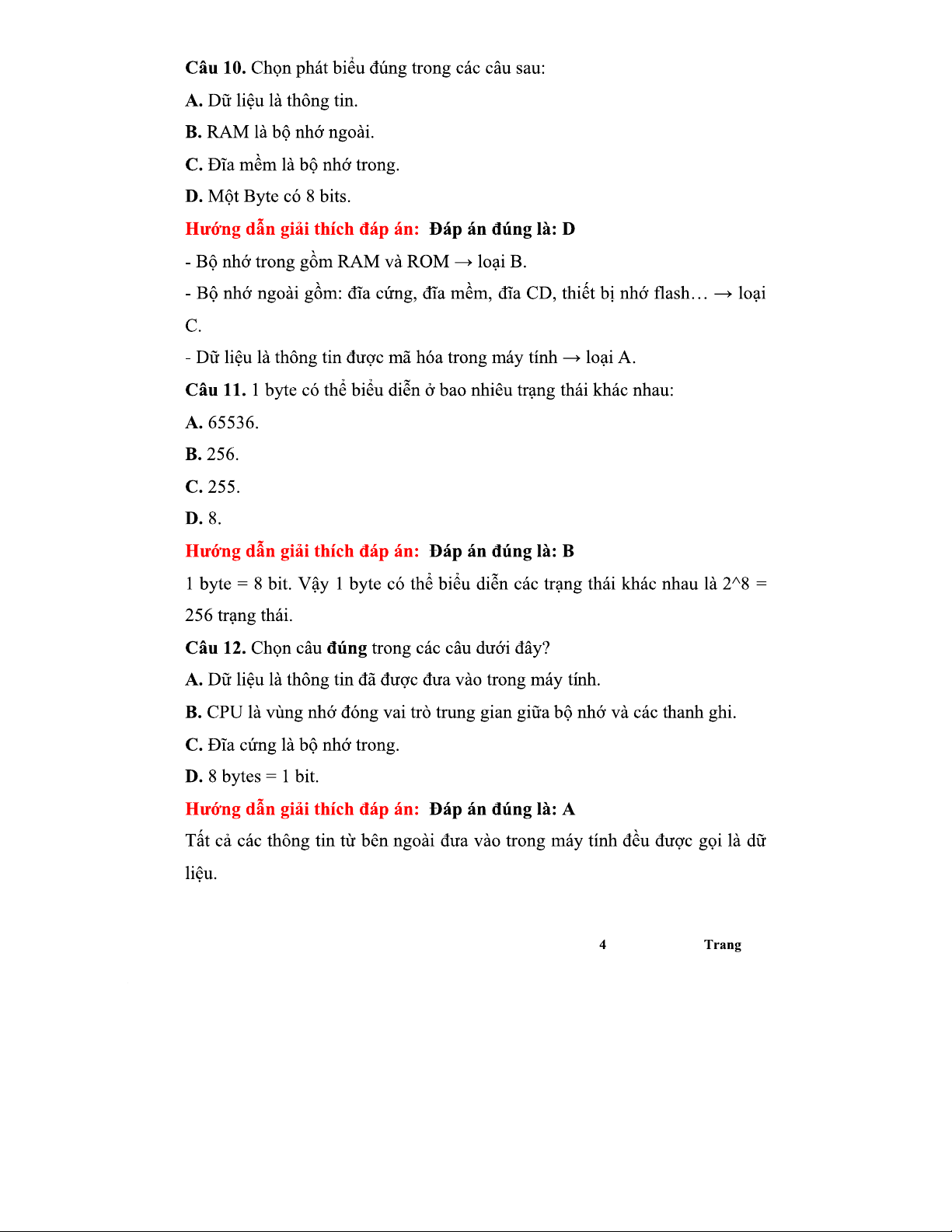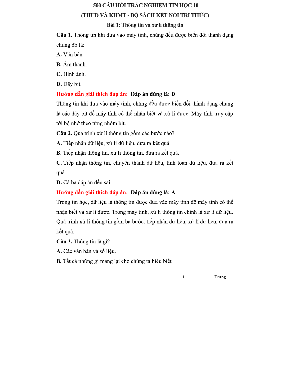 500 Câu Hỏi Trắc Nghiệm Tin Học Lớp 10 (THUD và KHMT - KNTT)
