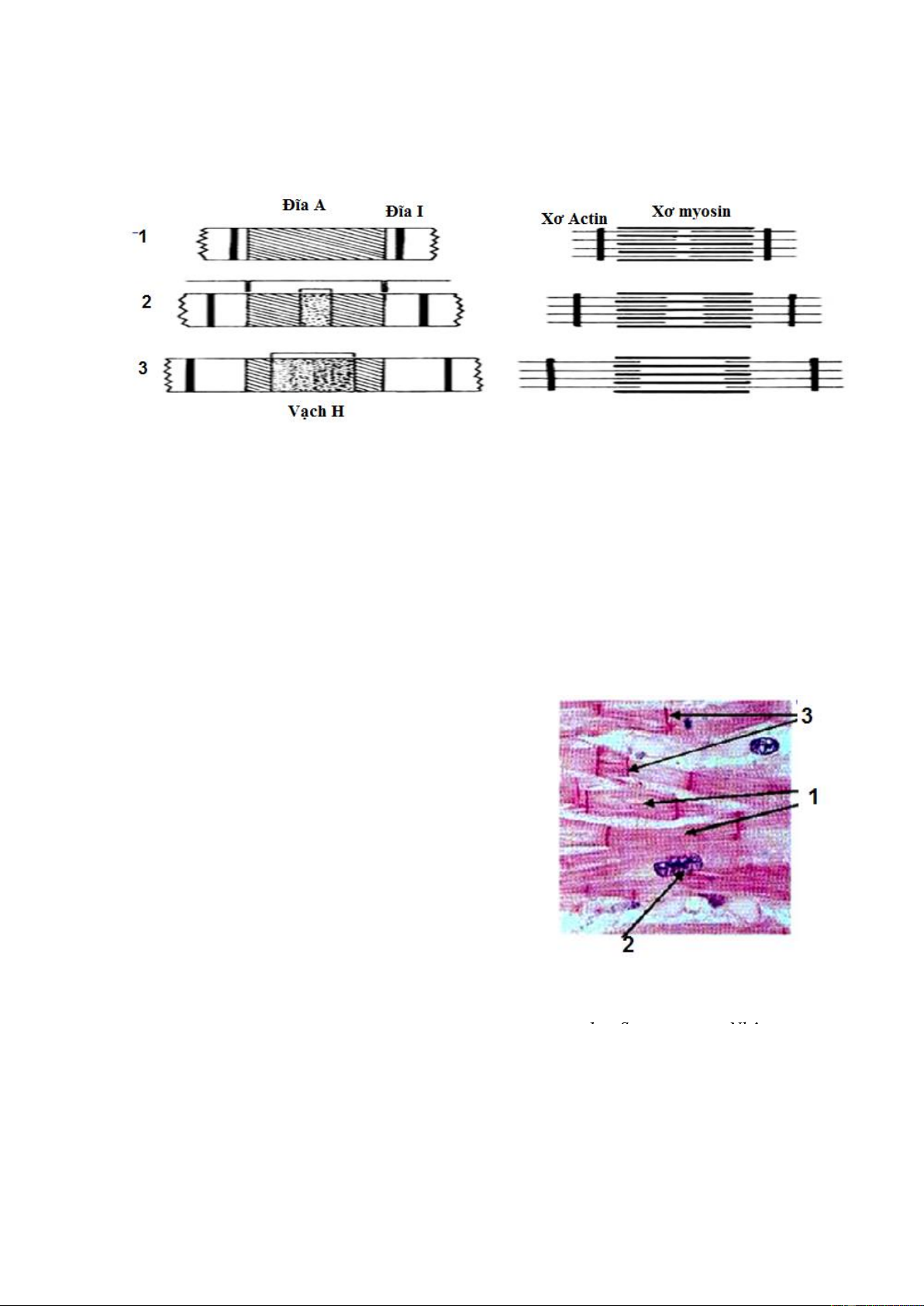 A. Sợi cơ cắt dọc; B. Sợi cơ cắt ngang 1