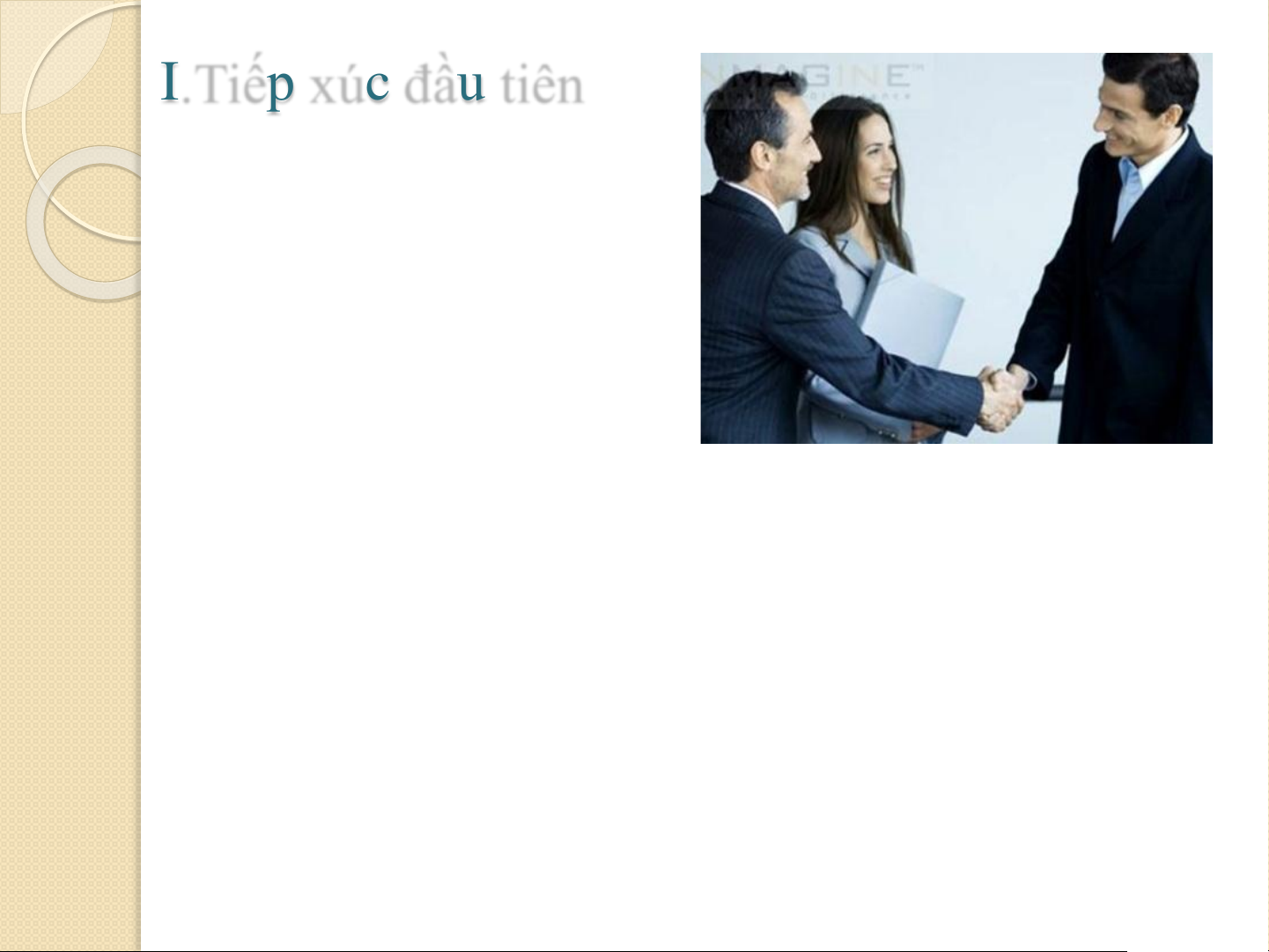 nên dùng tay trái hay bắt cả 2 tay. 11 I.Tiếp xúc đầu tiên 2. Gặp trực tiếp: