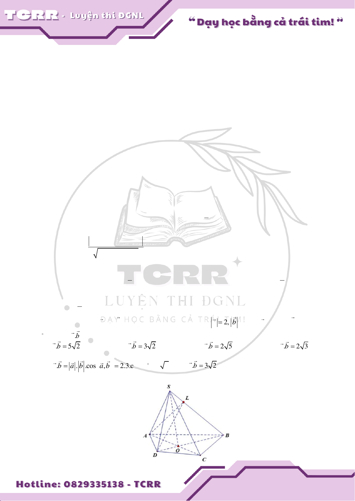 Câu 5: Cho hai vectơ a và b khác vectơ - không thỏa mãn a 2, b 3 và a tạo với b một góc bằng