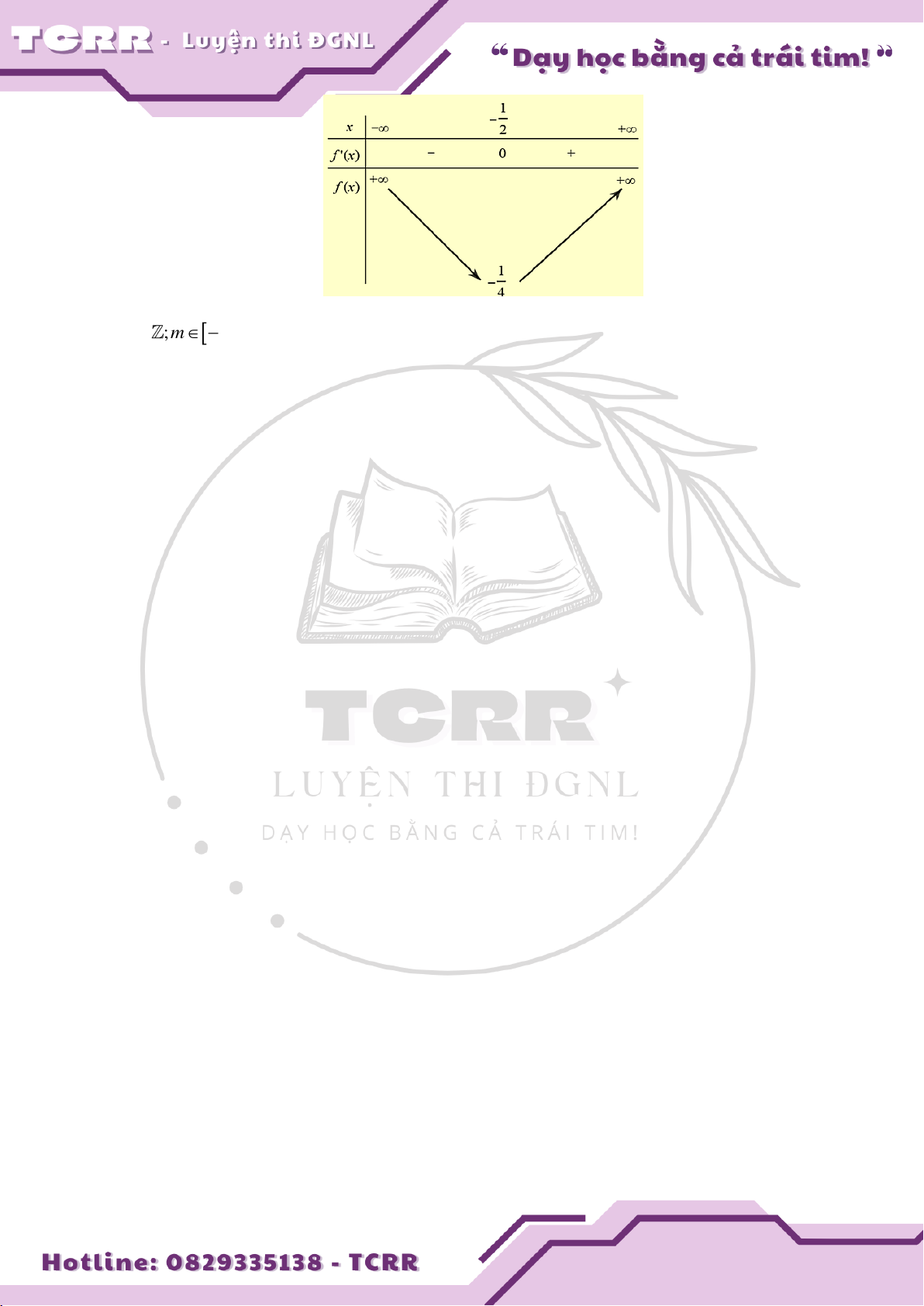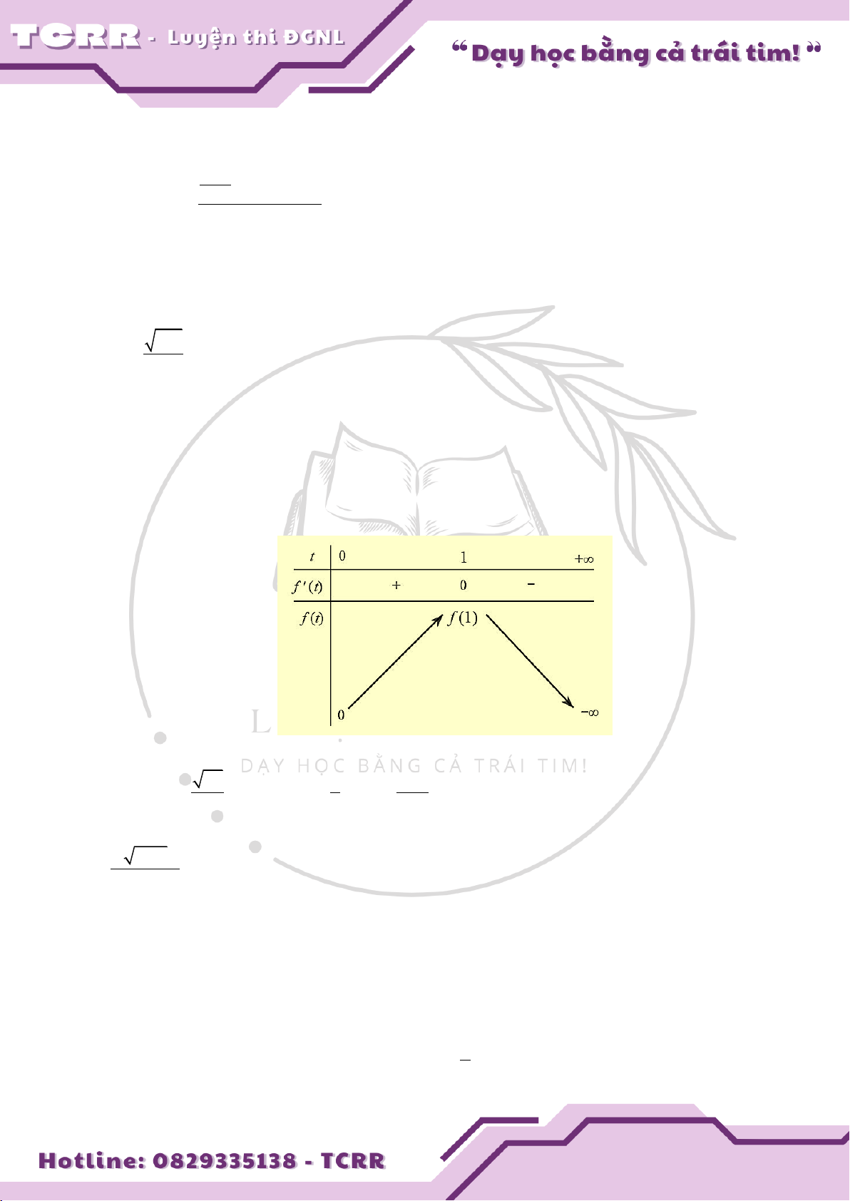 1 2e Phương trình (1) có nghiệm duy nhất t 1. Bảng biến thiên: