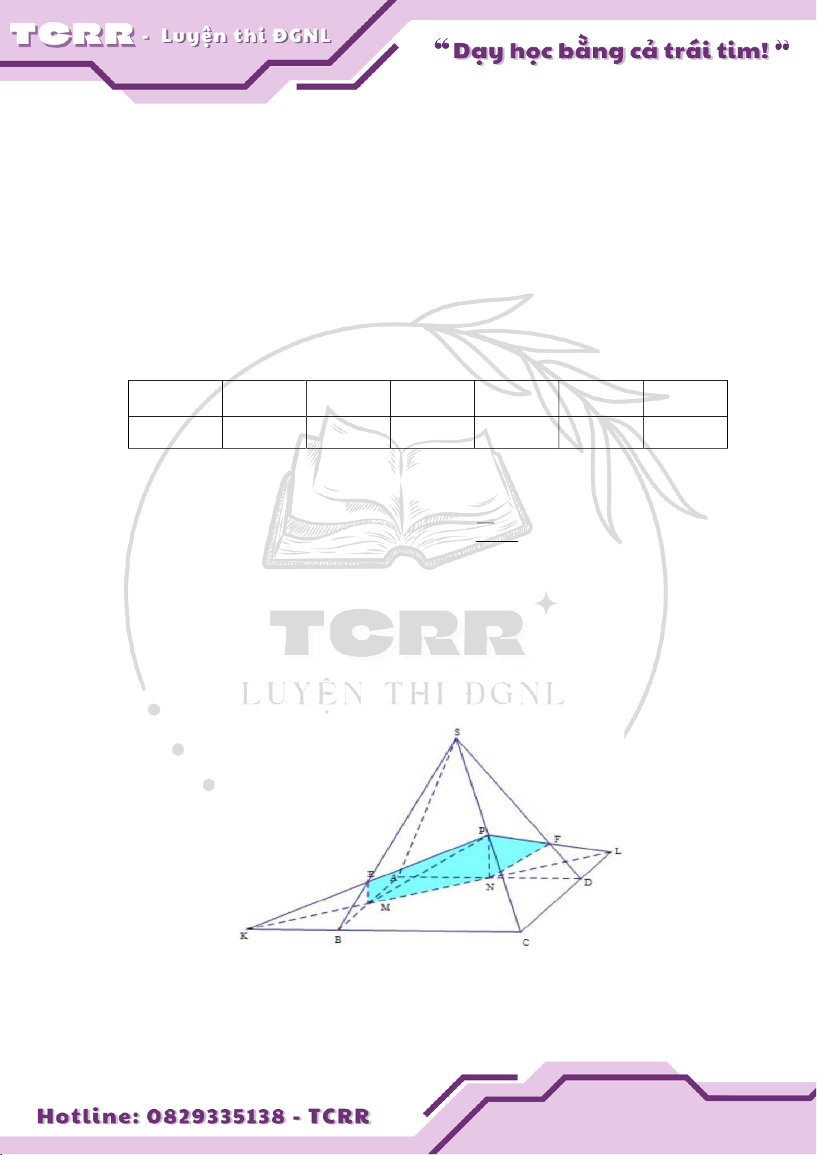Câu 8: Cho hình chóp S.ABCD đáy là hình bình hành ABCD . Gọi M , N, P lần lượt là trung điểm của A , B A ,