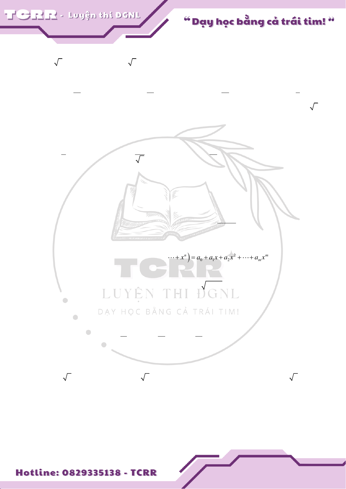 a a x a x a x . Tính a . 0 1 2 m r r 0 A. n . B. n! C. 1. D. n 1 !