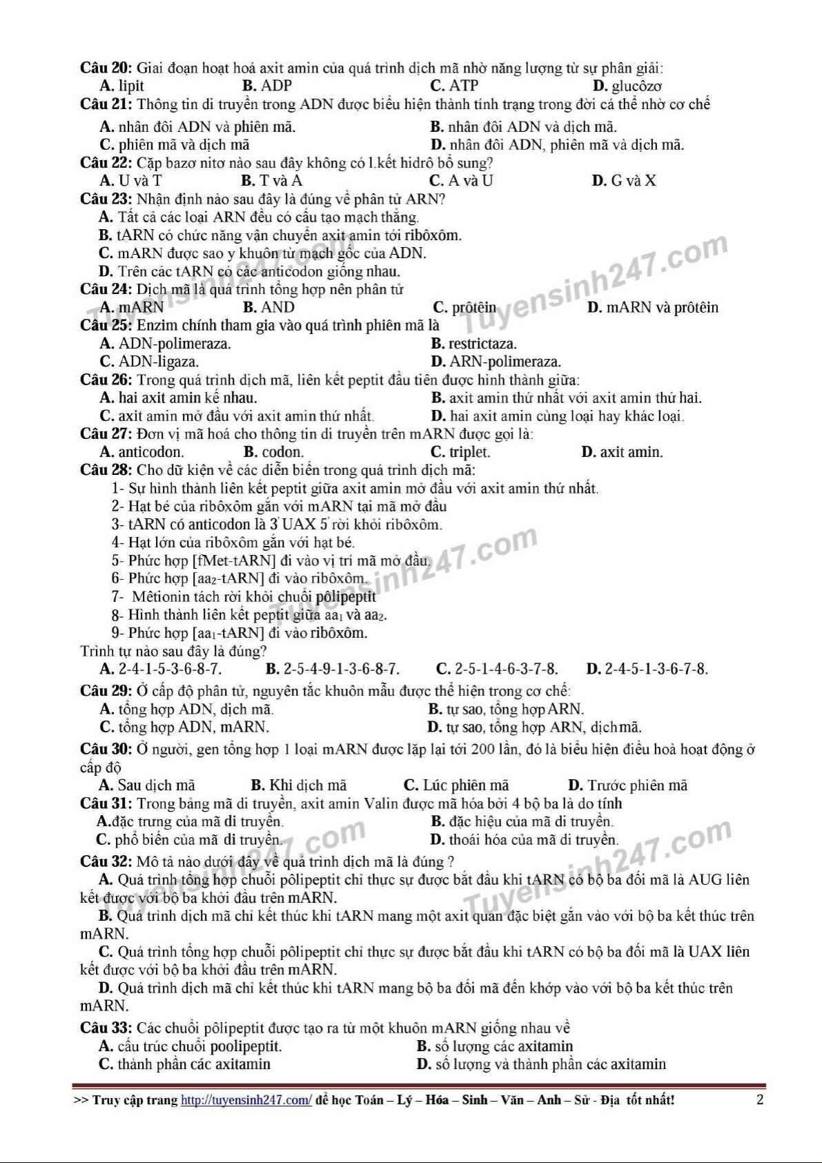 60 câu trắc nghiệm chuyên đề Phiên mã - Dịch mã có đáp án môn Sinh học 12