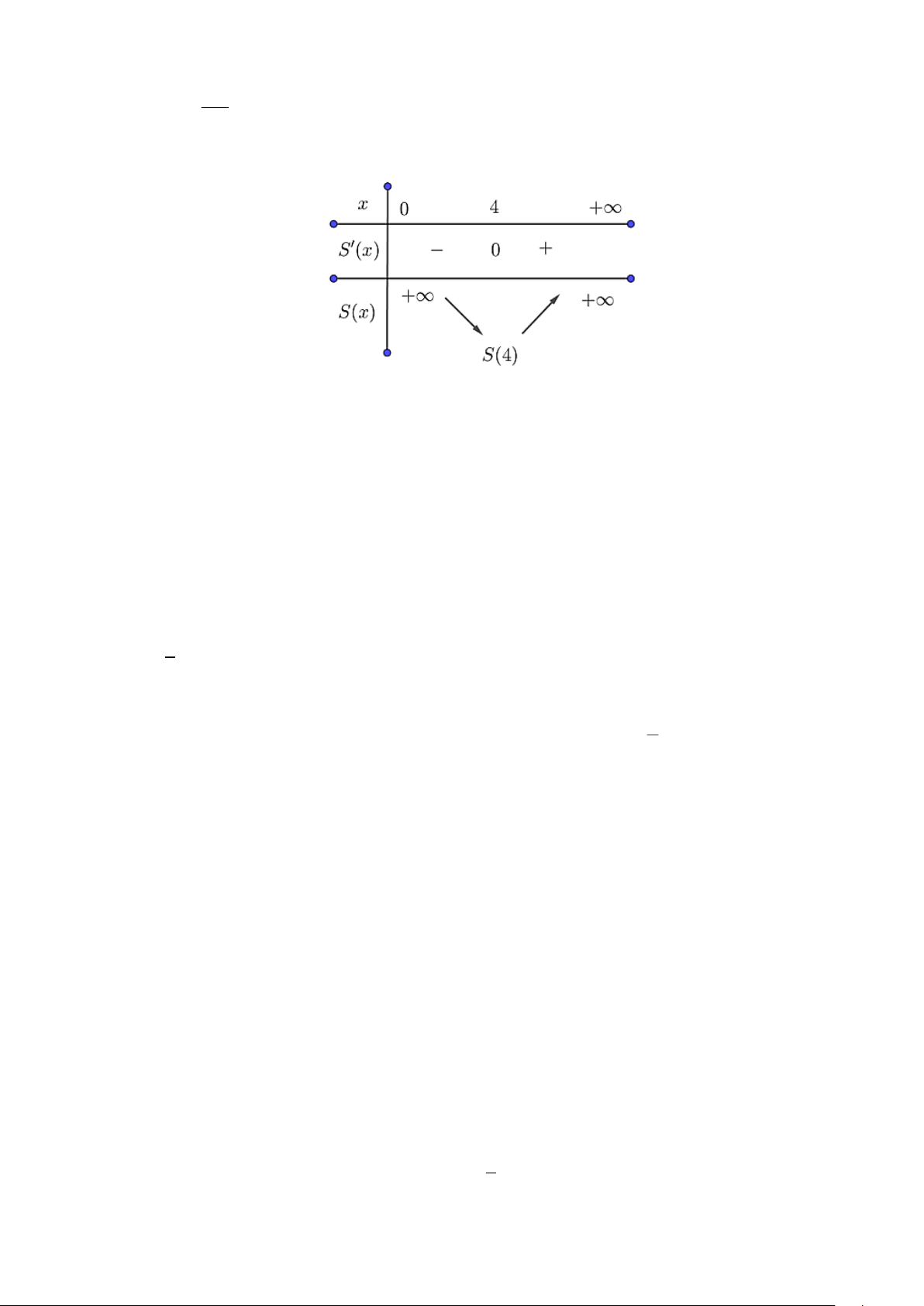 d) Ta có: S( x) = − + 2x = 0 = 0 x = 4 . 2 2 x x Ta có bảng biến thiên: