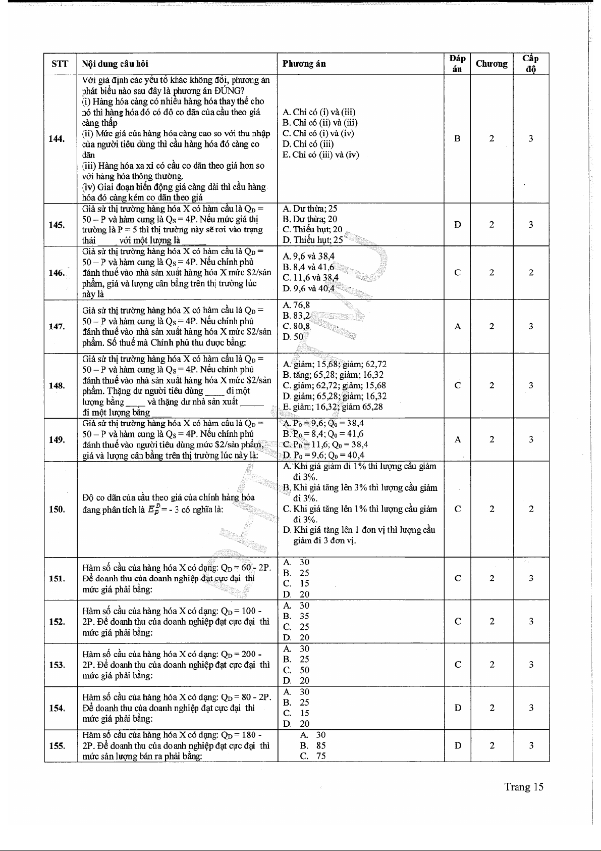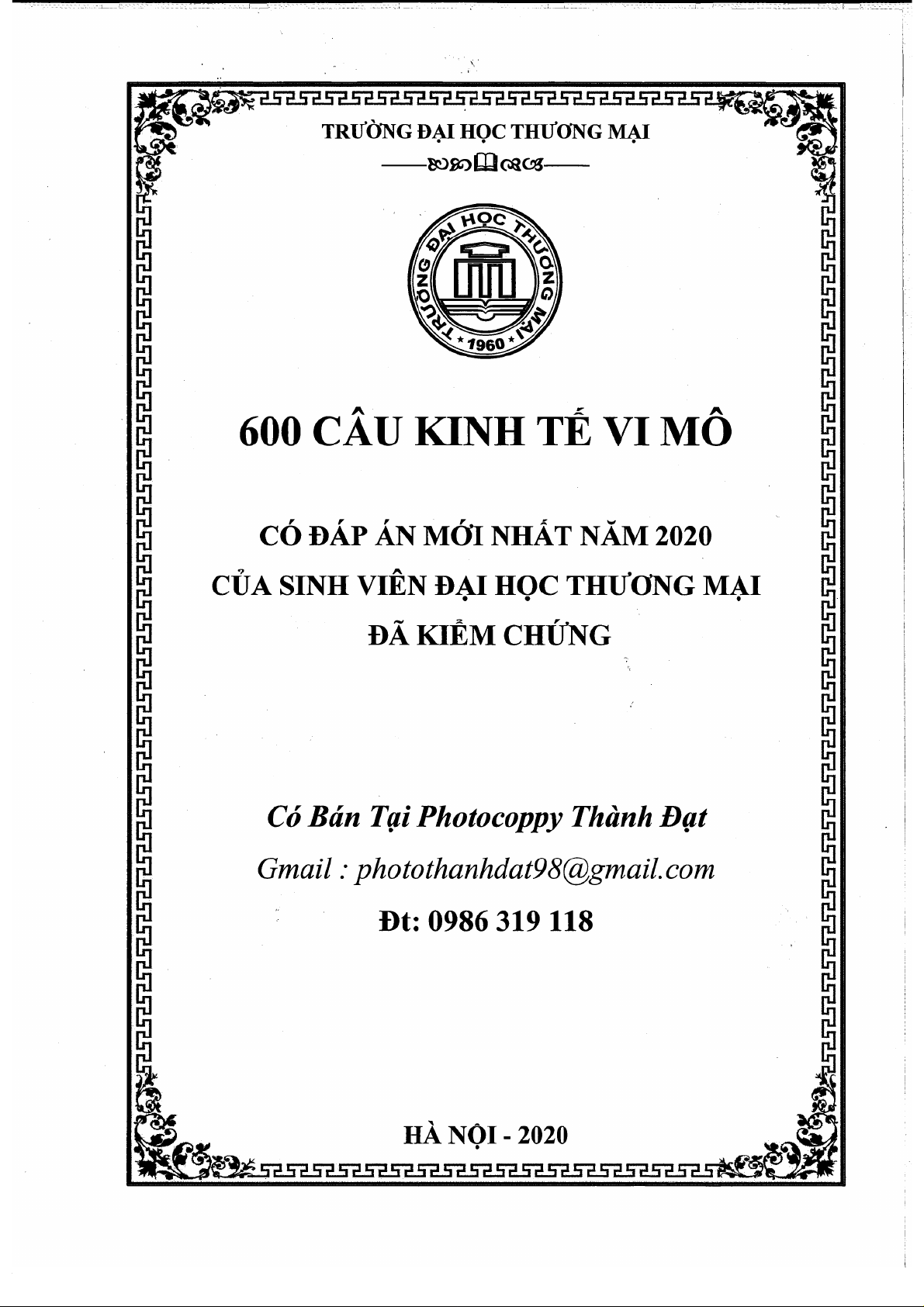 600 câu ôn tập kinh tế vi mô | Trường Đại học Thương Mại