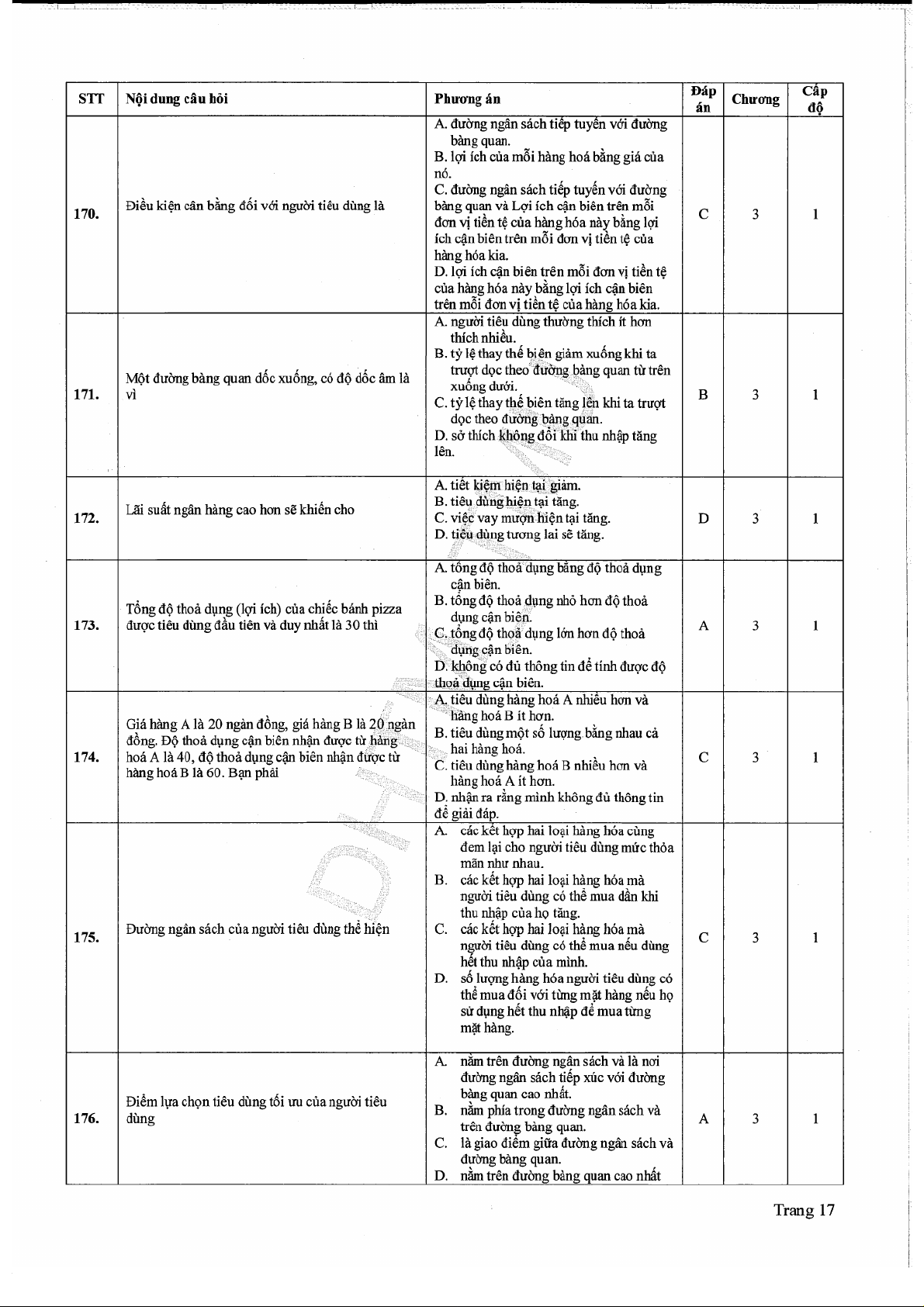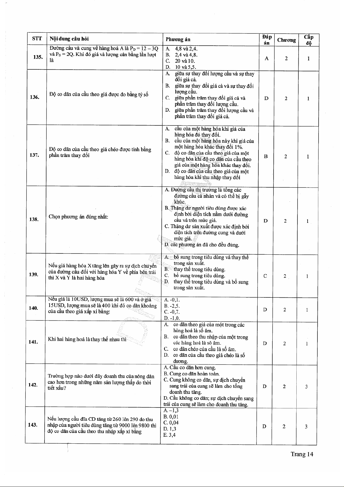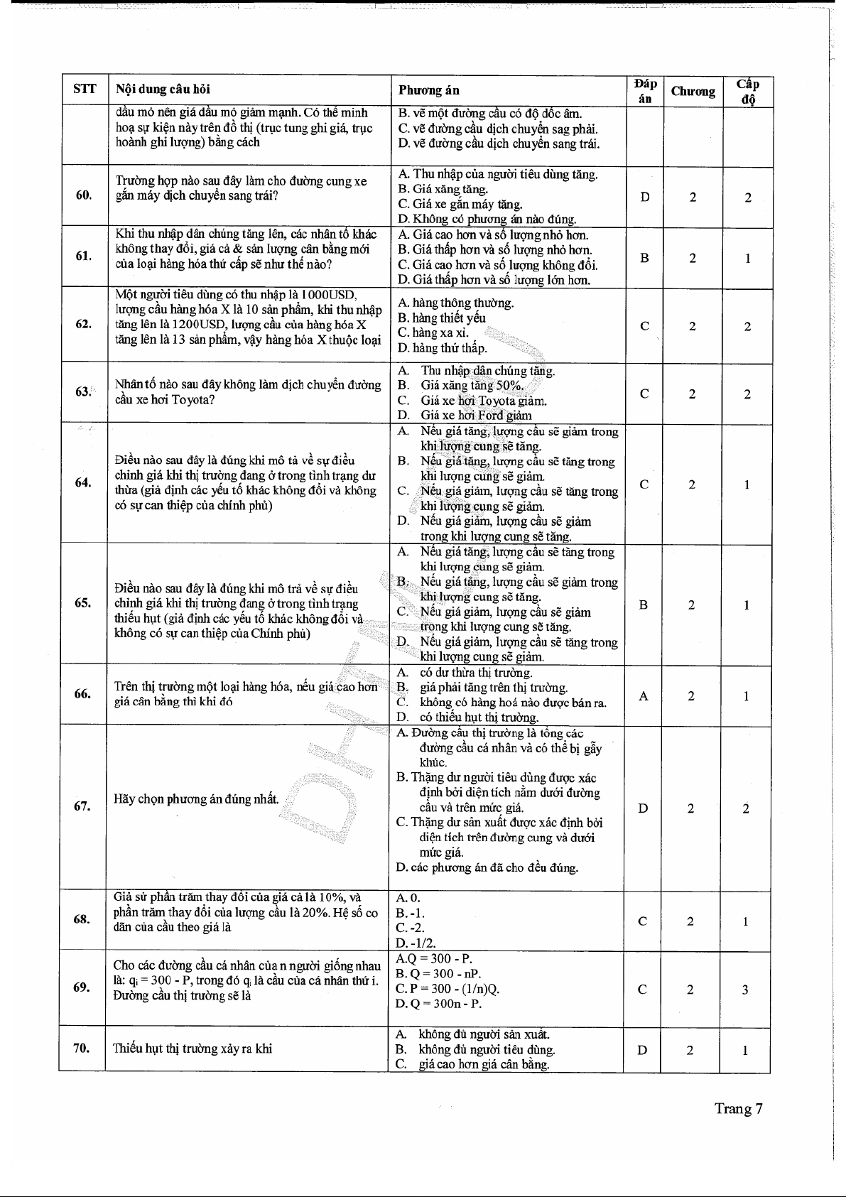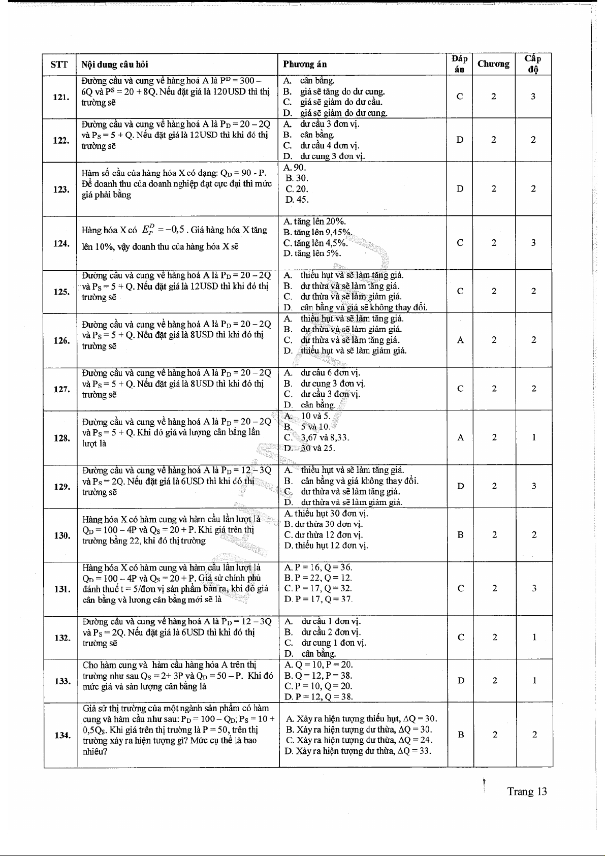 Bài tập trắc nghiệm Kinh Tế Vi Mô | Trường Đại học Thương mại