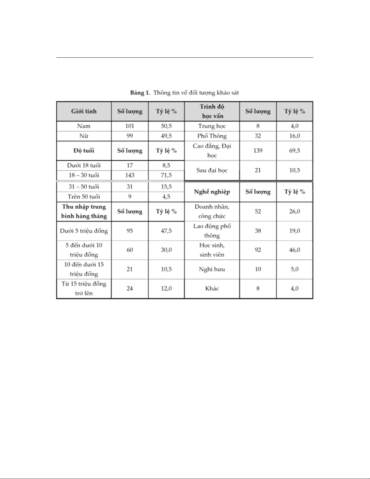 vẫn chưa thực sự được chú trọng và phổ biến. Kết quả nghiên cứu từ 200 khách du lịch nội địa đang du lịch tại thành