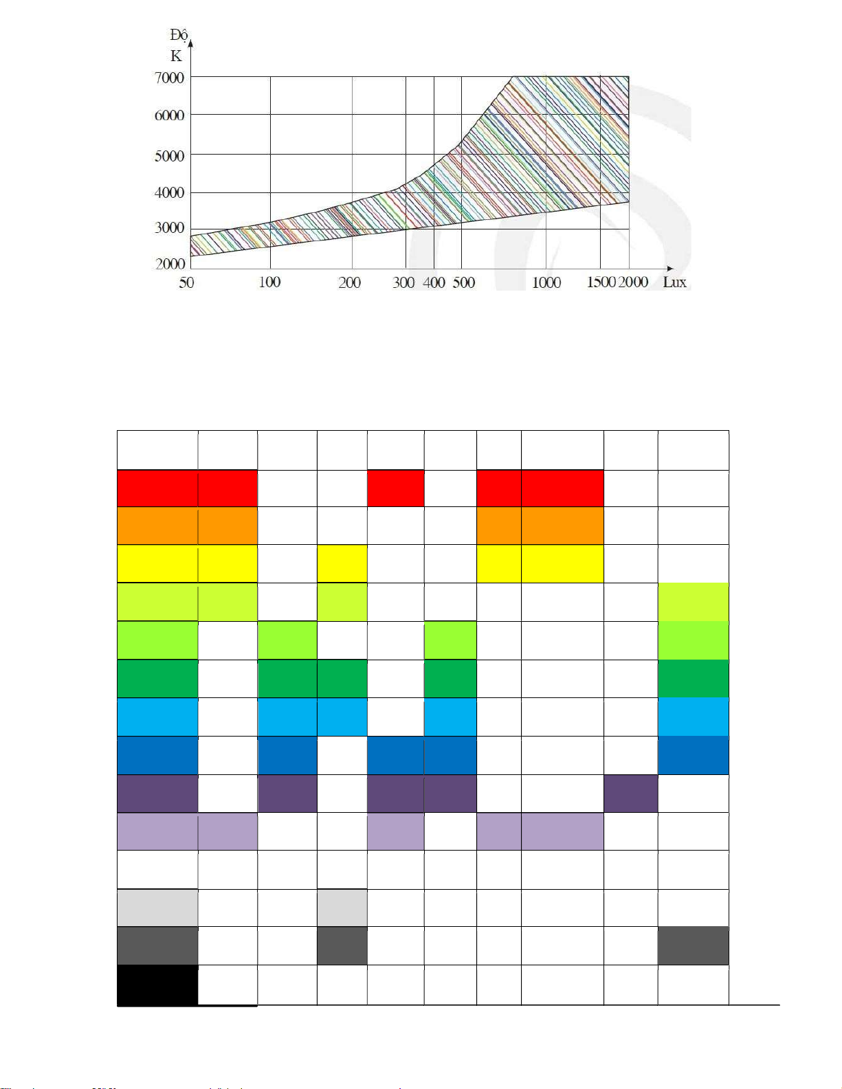 với ộ tiện nghi cao thì nguồn sáng phải có nhiệt ộ màu thích hợp. Bảng trên cho nhiệt ộ màu