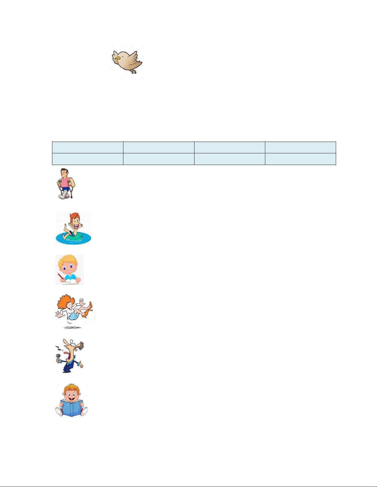 1.Jump | 2.swim | 3. write | 4. dance |