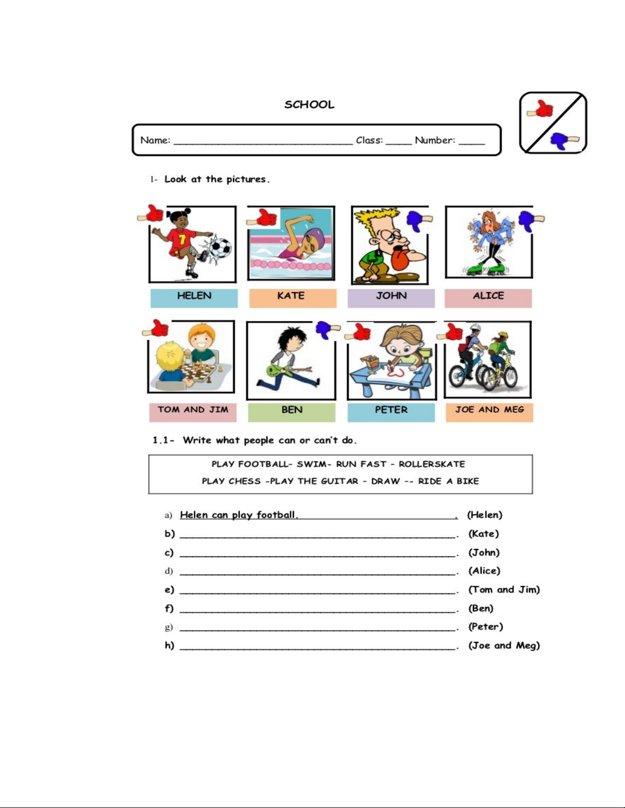 Ex VII:Write things you CAN or CAN’T do