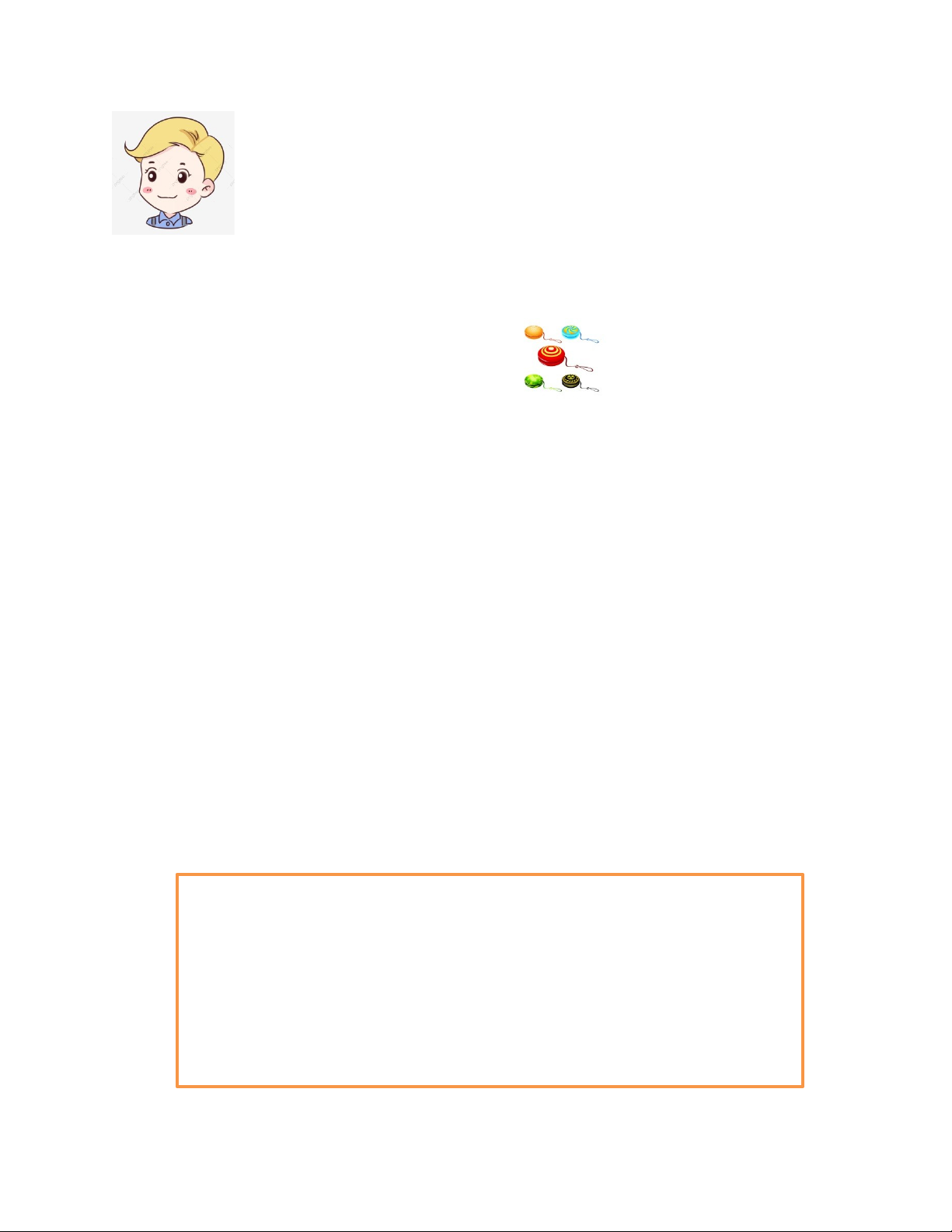 This is Tom. He’s eight years old. He’s tall and fat. He’s got blond hair and big black eyes. He can ride a bike and swim. He can’t skip and he can’t dance. His favorite toy is a boat. It is red. He’s got three blue yoyos and a yellow yoyo too.