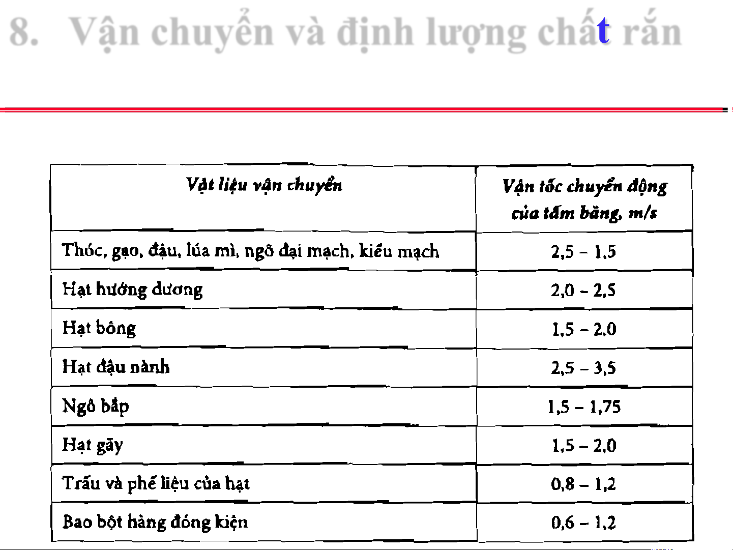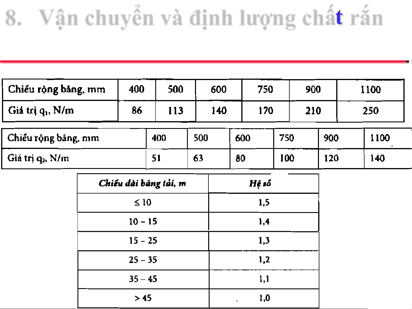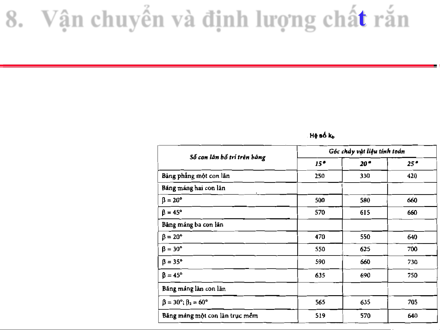 8.1. Vận chuyển chất rắn Băng tải: