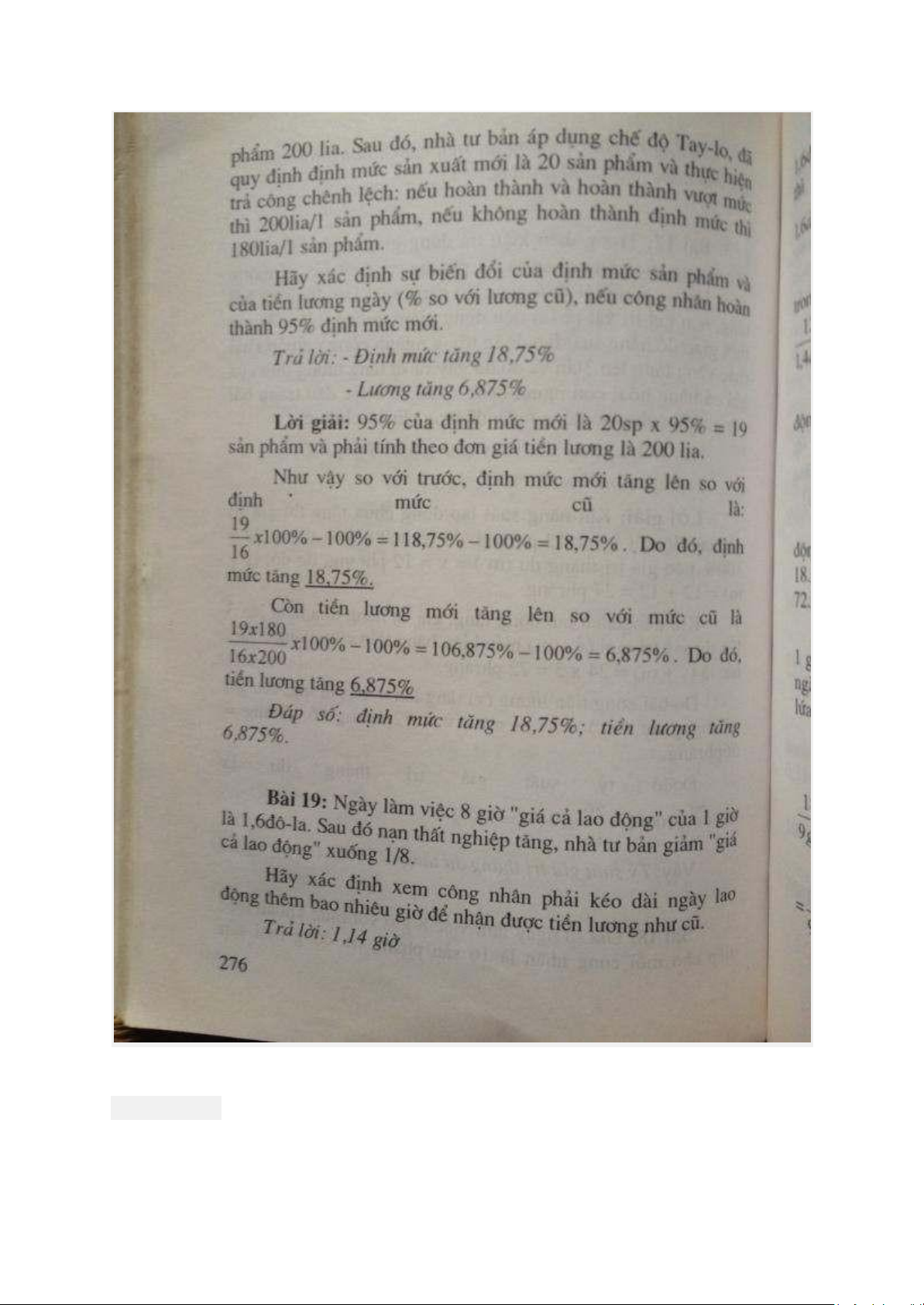 Bài tập số 19: Ngày làm việc 8 giờ “giá cả lao động” của 1 giờ