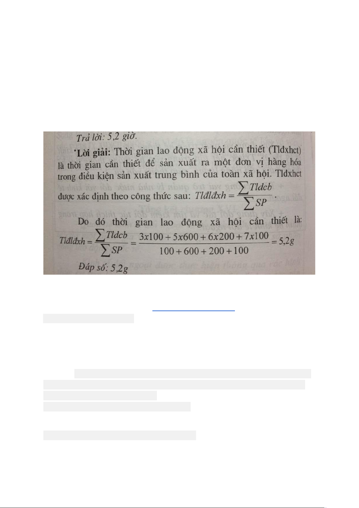 và 100 đơn vị sản phẩm . Hãy tính thời gian lao động xã hội cần thiết để làm ra một đơn vị hàng hóa. Đáp án: 5,2 giờ. Lời giải: