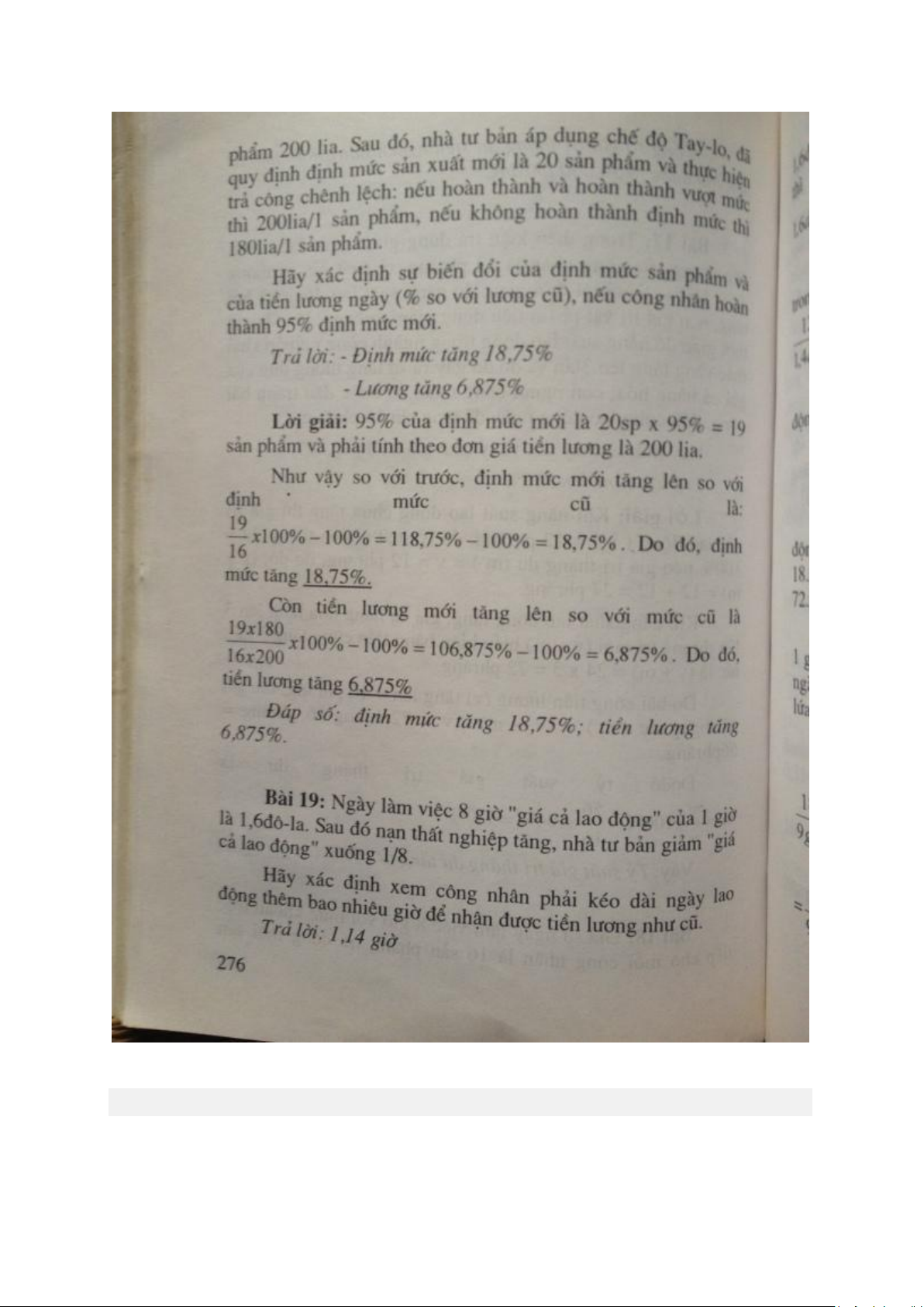 Bài tập số 19: Ngày làm việc 8 giờ “giá cả lao động” của 1 giờ