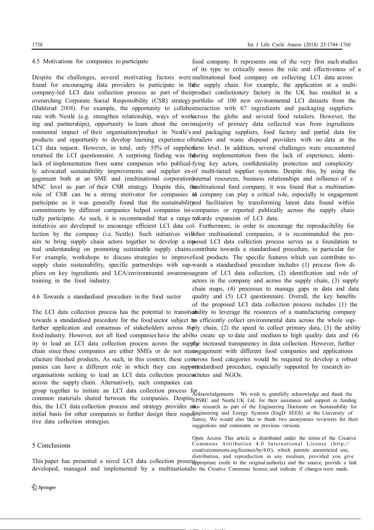 Conclusions The integrated LCI data collection process and 4