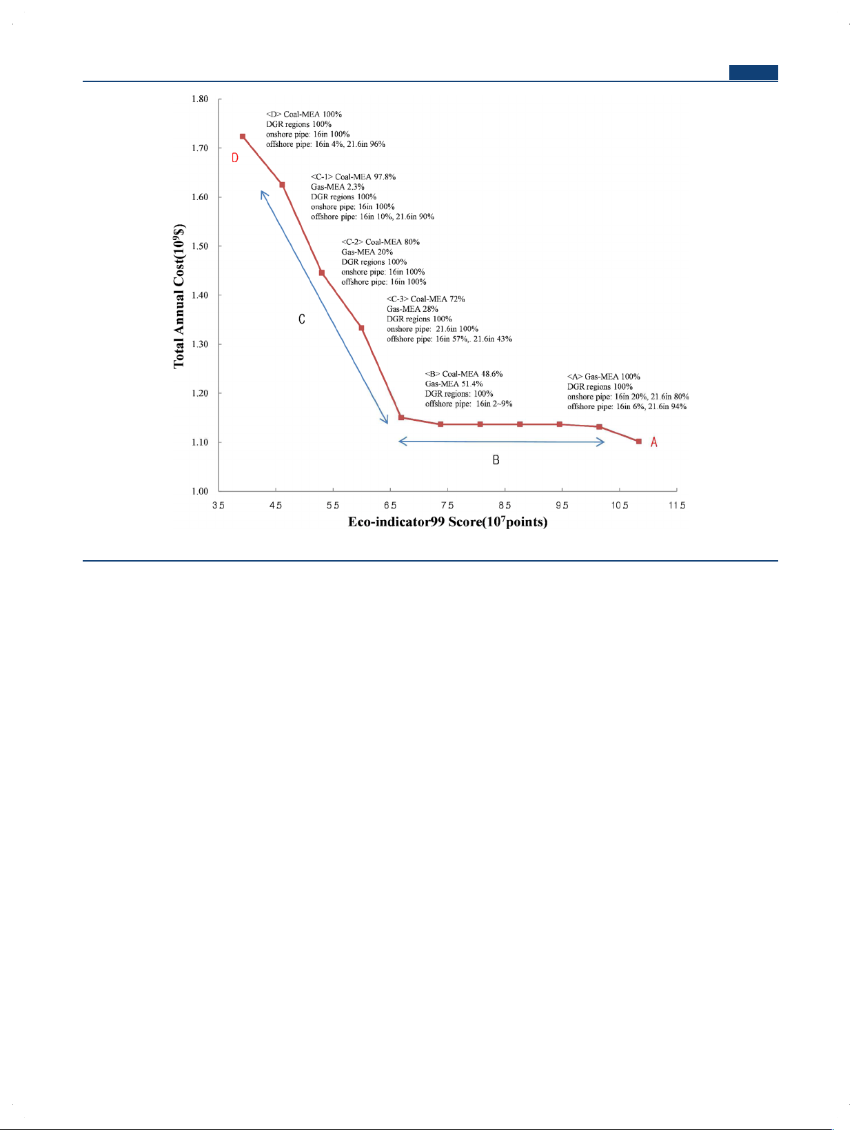 D, the minimum Eco99 solution, has CO2 captured in coal−