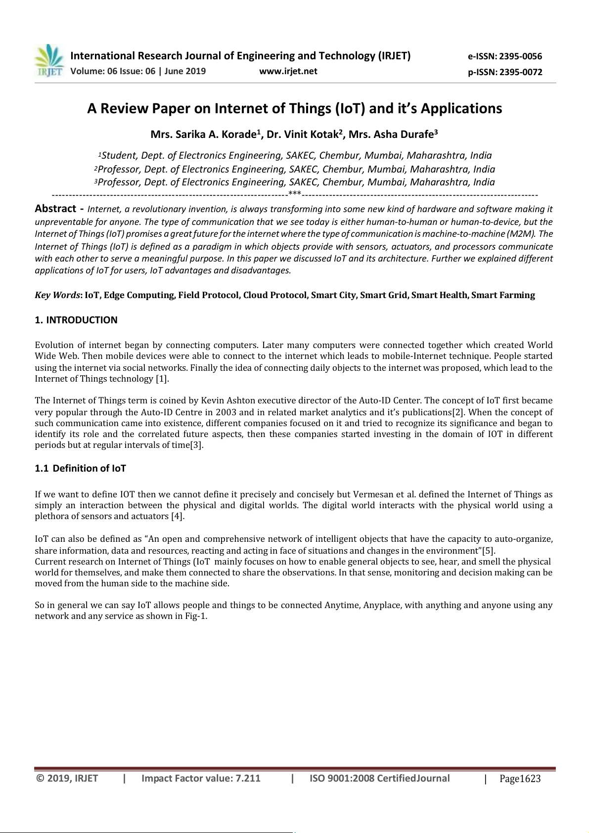 Key$Words:"IoT,"Edge"Computing,"Field"Protocol,"Cloud"Protocol,"Smart"City,"Smart"Grid,"Smart"Health,"Smart"Farming"" 1. INTRODUCTION