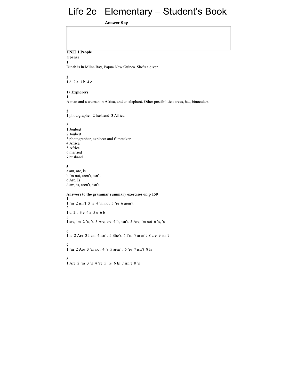 A1-A2 SB AK - Life 2e Elementary Student Book Answer Key