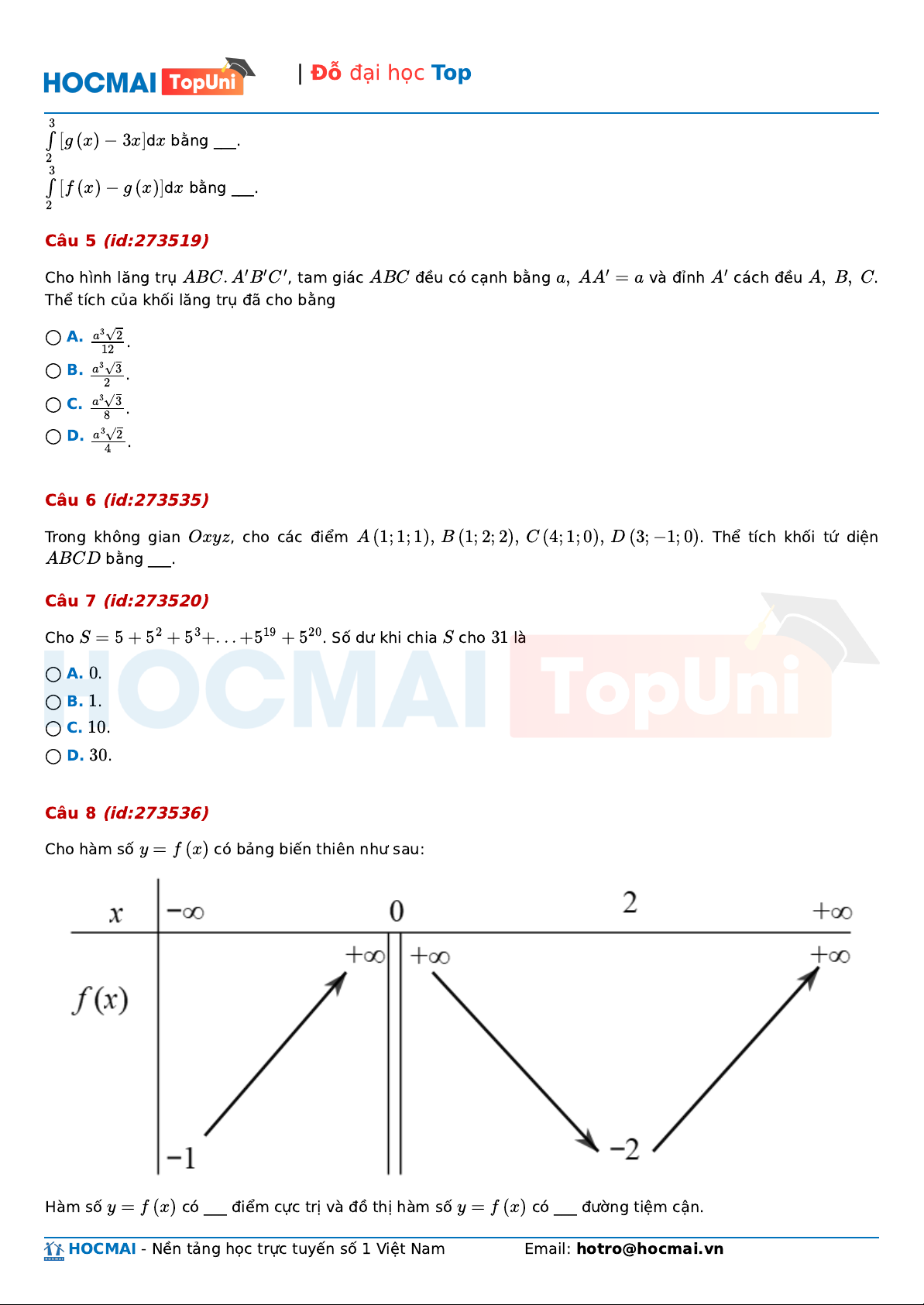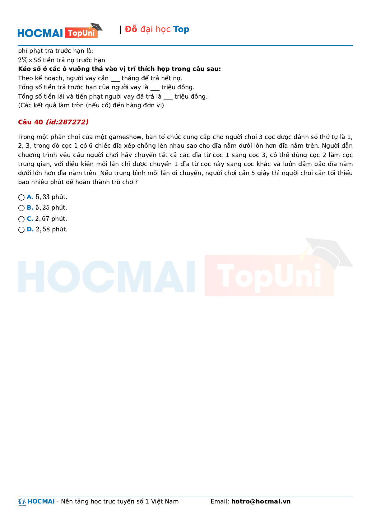 HOCMAI - Nền tảng học trực tuyến số 1 Việt Nam Email: hotro@hocmai.vn