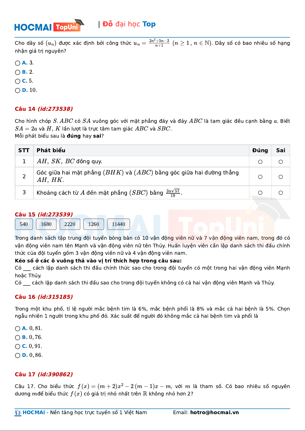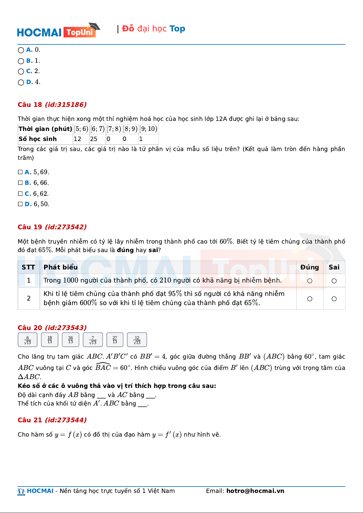 | Đỗ đại học Top ◯ A. . 0 ◯ B. . 1 ◯ C. . 2 ◯ D. . 4 Câu 18 (id:315186)
