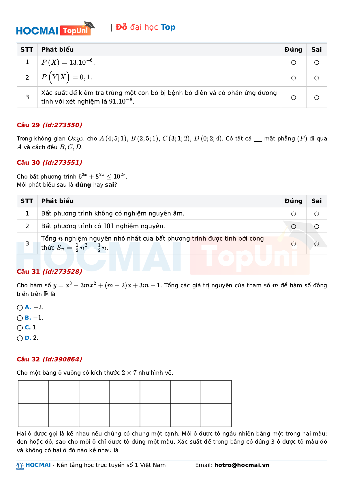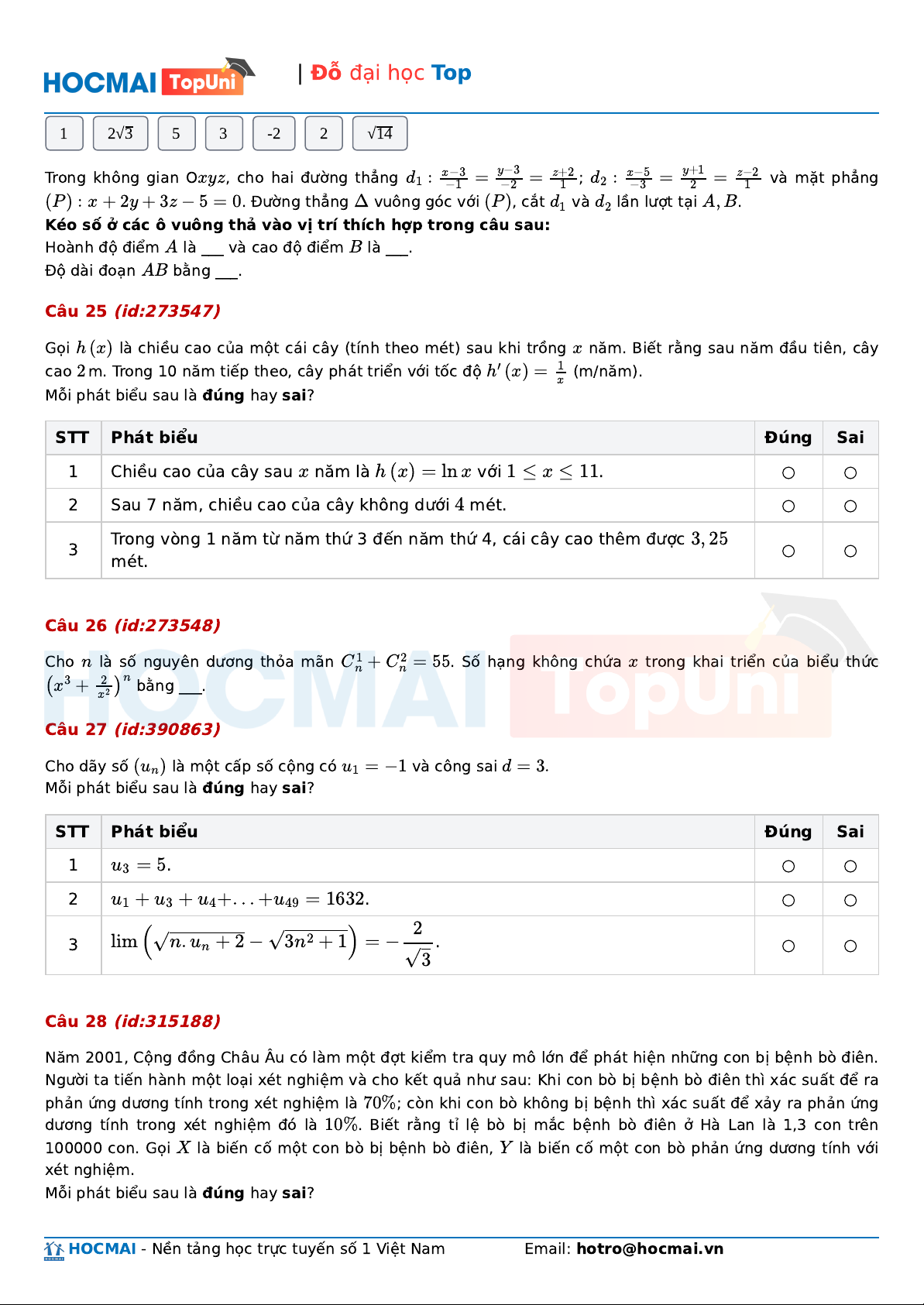 | Đỗ đại học Top STT Phát biểu Đúng Sai 1