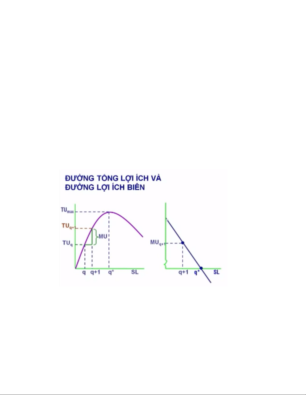 Lợi ích biên (MU) : phần thay đổi trong tổng lợi ích khi thay đổi 1 đơn vị sản phẩm tiêu dùng MUq+1 = TUq+1 - TUq
