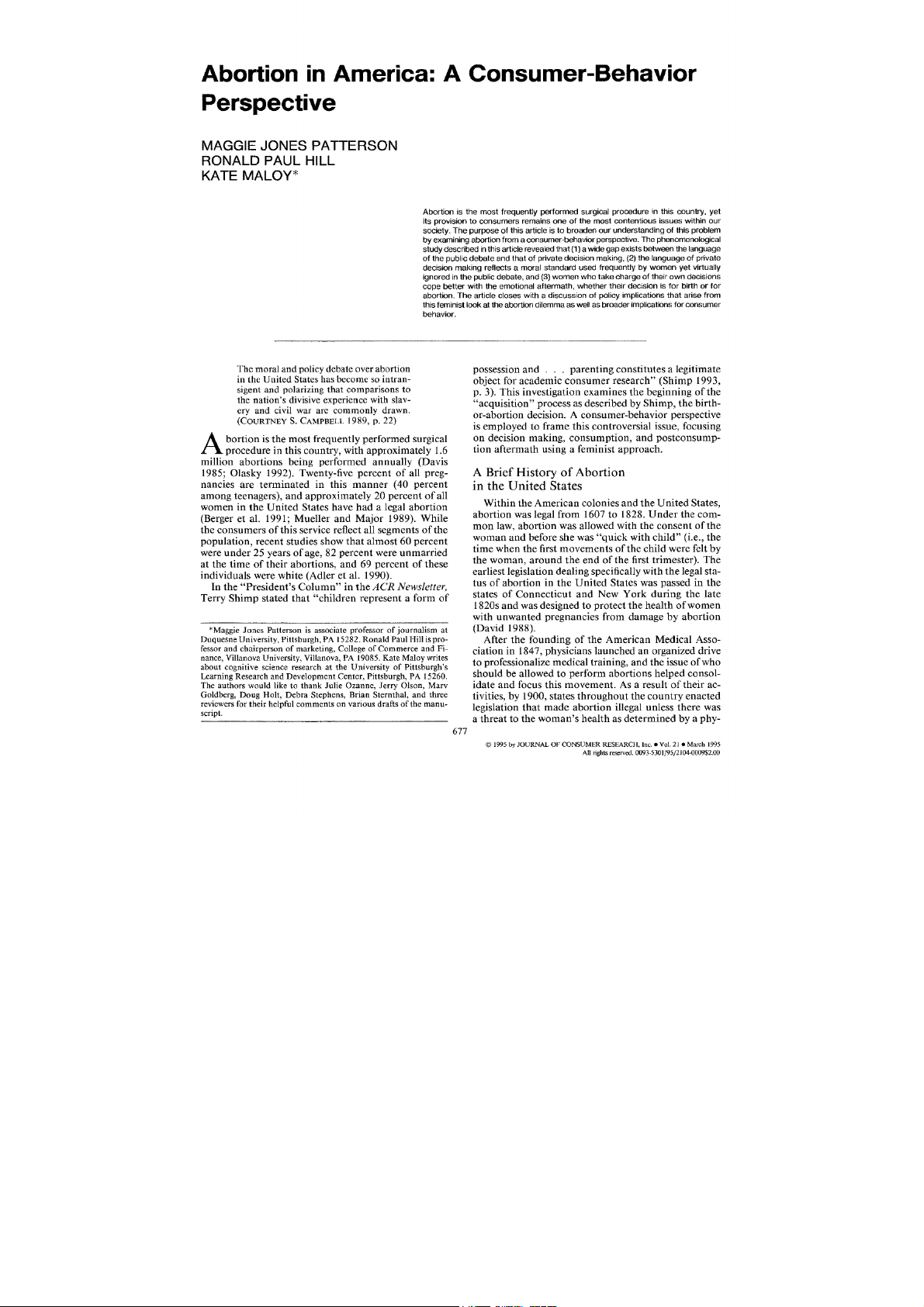 Abortion in America: A Consumer-Behavior Perspective