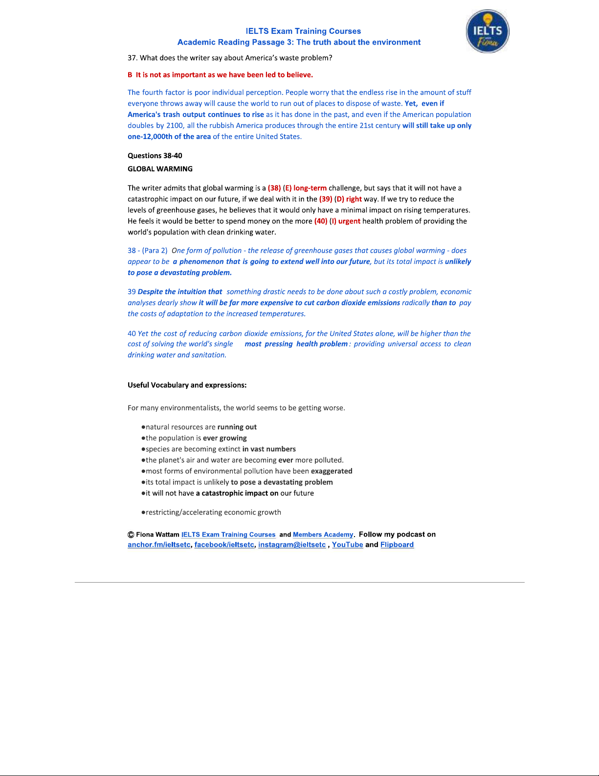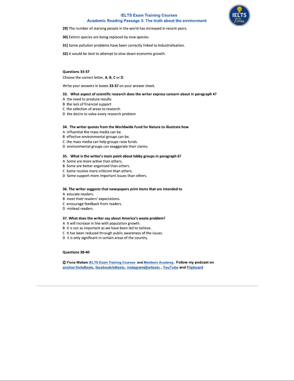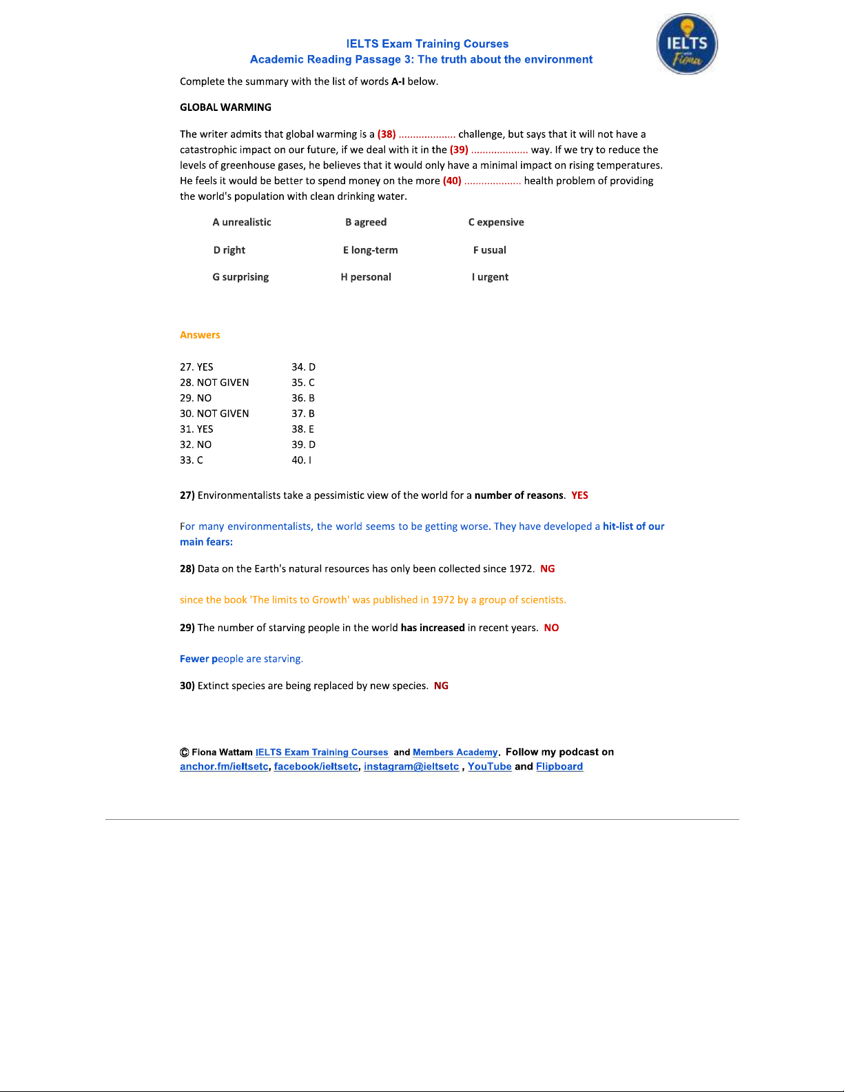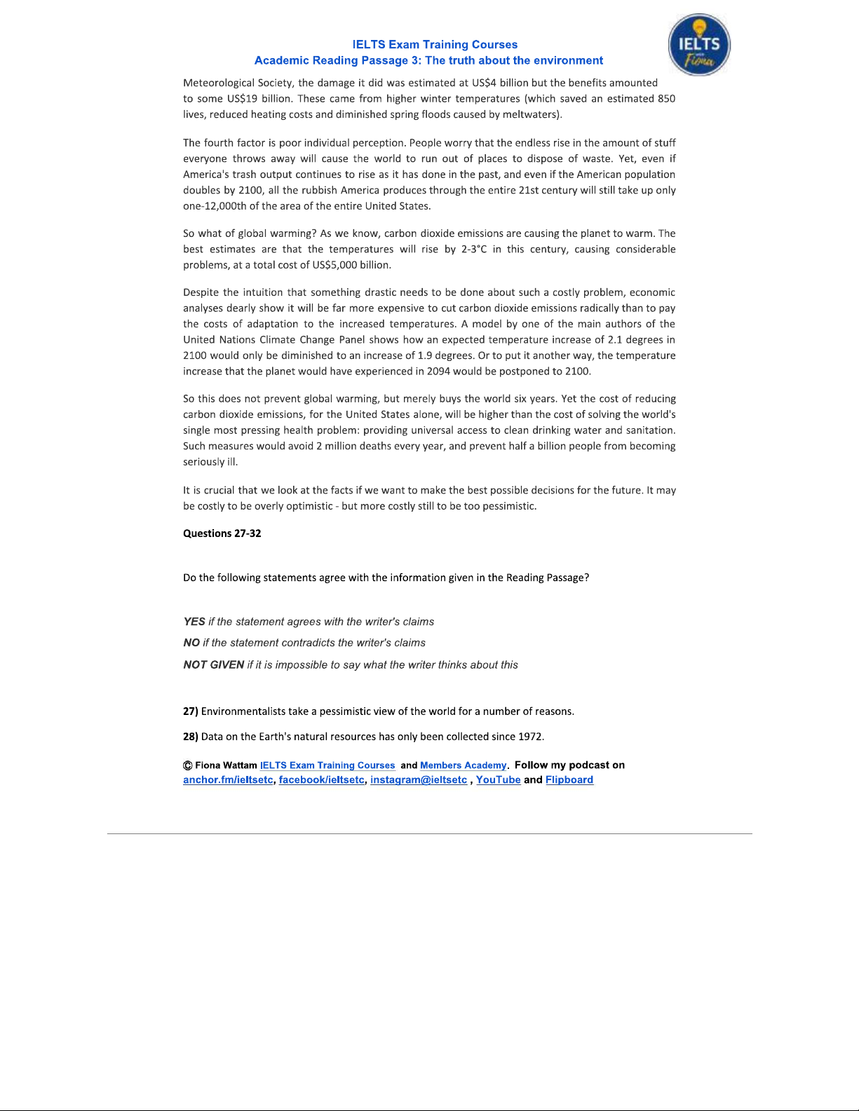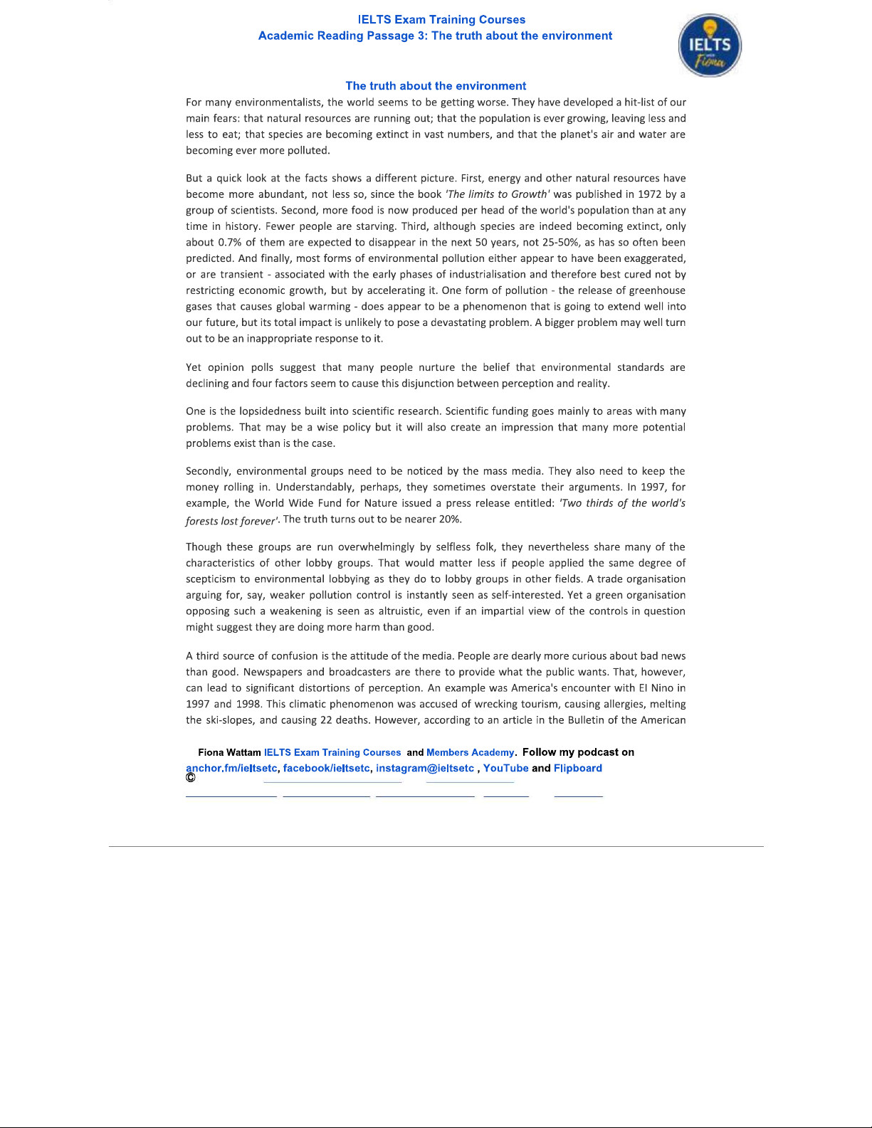 Academic Reading: The Truth About the Environment - Passage 3 Analysis