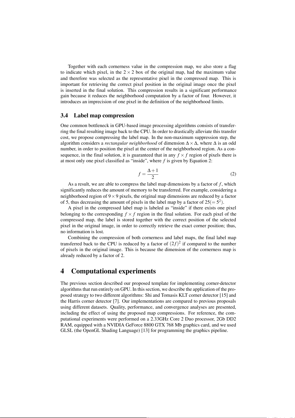 algorithms for real-time applications. Corner strength Non-maximum computation suppression Input image Cornerness map Label map