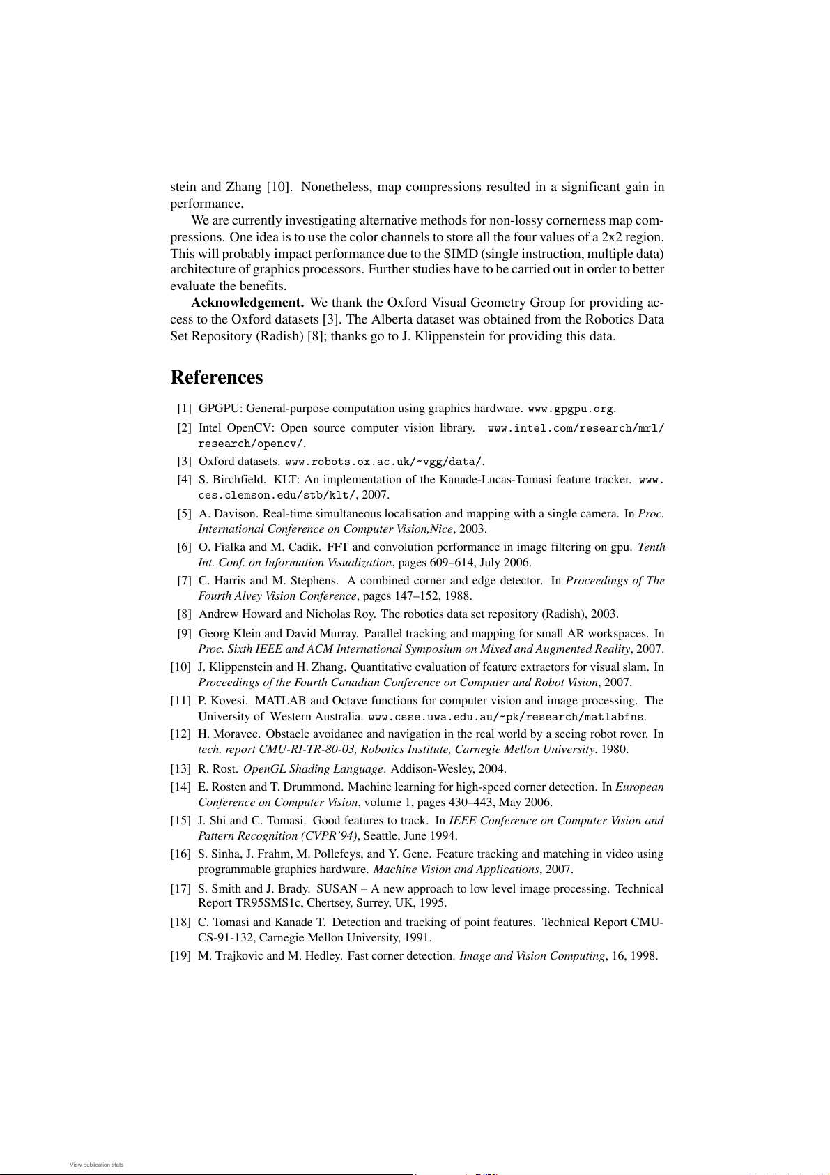 [4] S. Birchfield. KLT: An implementation of the Kanade-Lucas-Tomasi feature tracker. www.