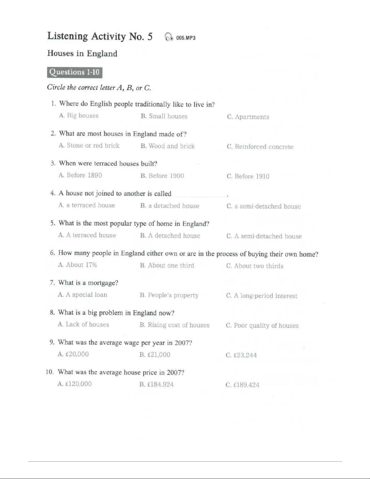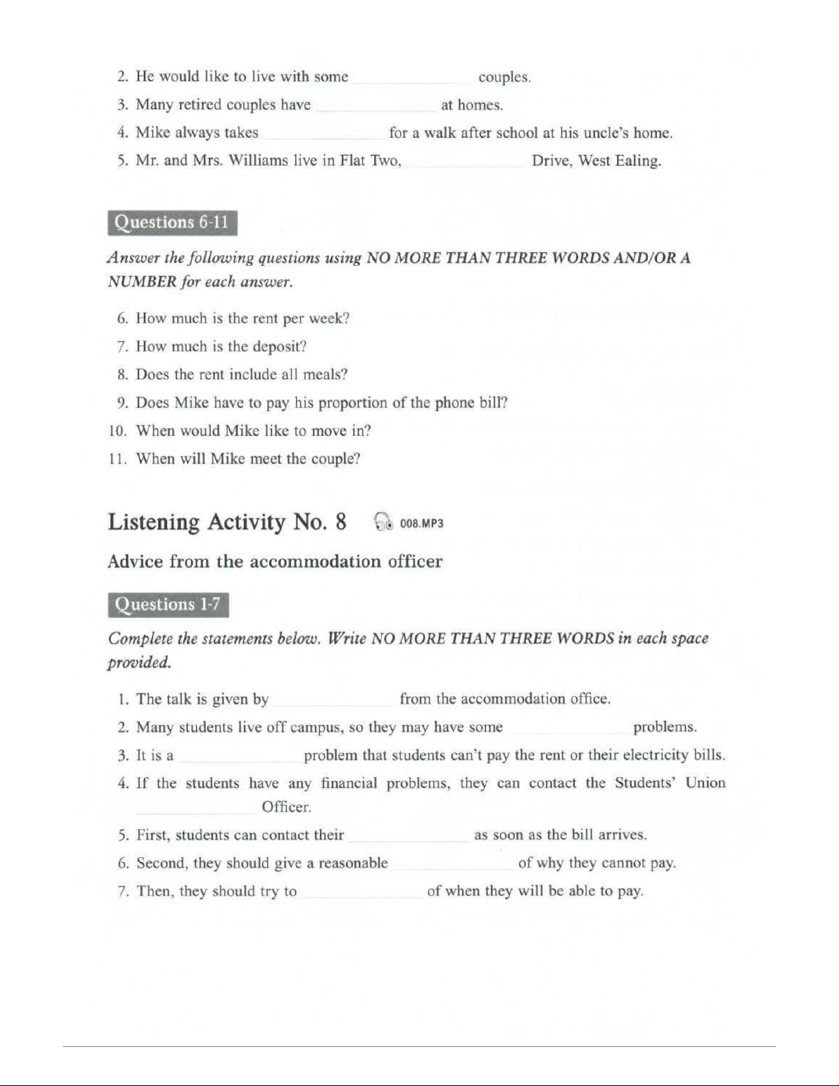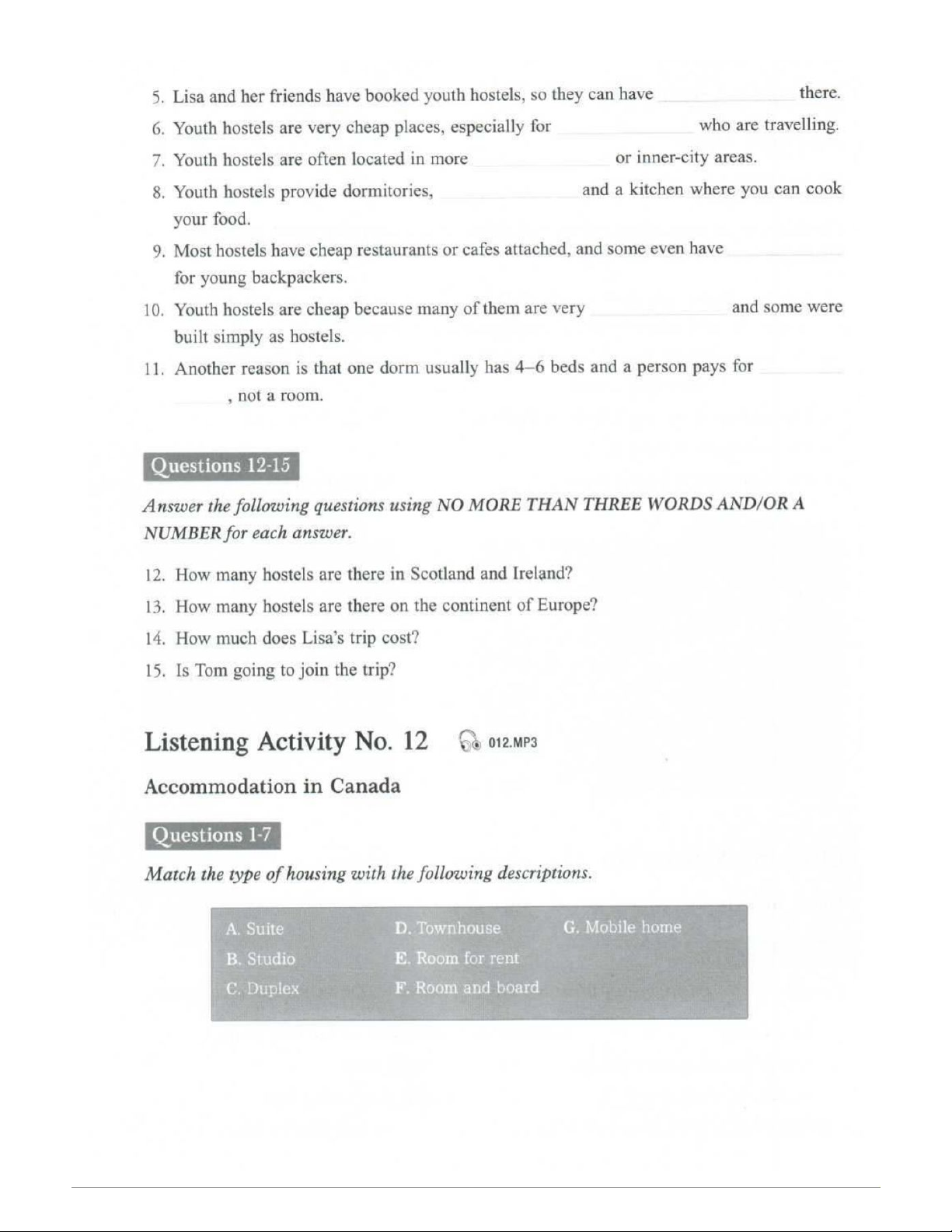 Accommodation Listening Activities | English 1 (TĐT) | Đại học Tôn Đức Thắng