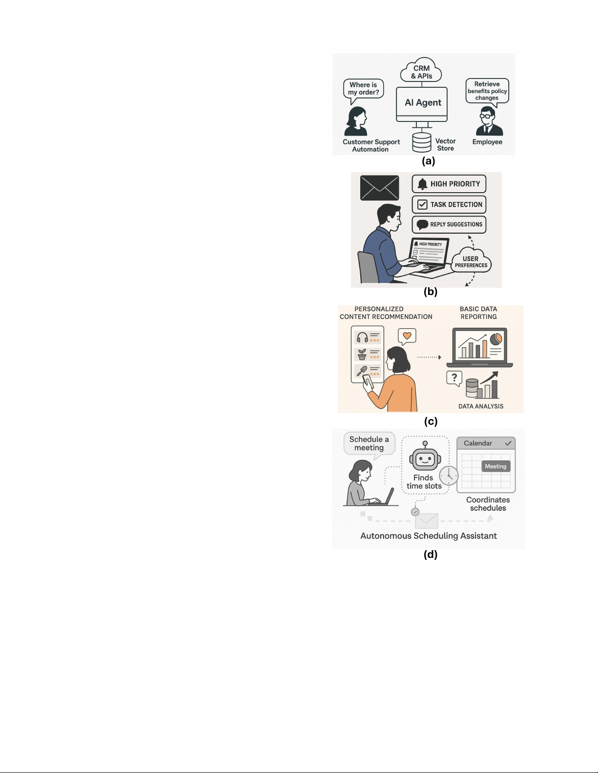 as customer support, scheduling, and data summarization are