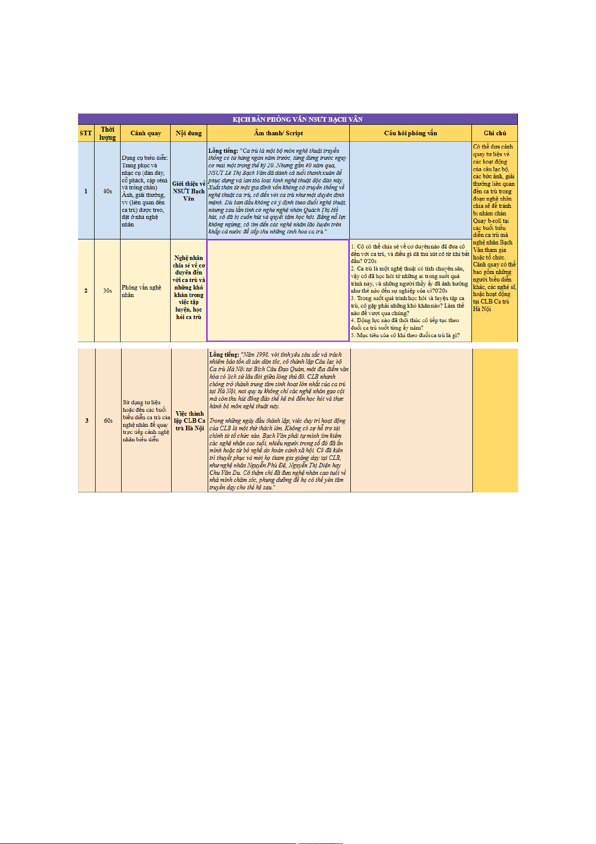Việc xây dựng bài phóng sự này phần lớn muốn giúp cho CLB ca trù nói chung