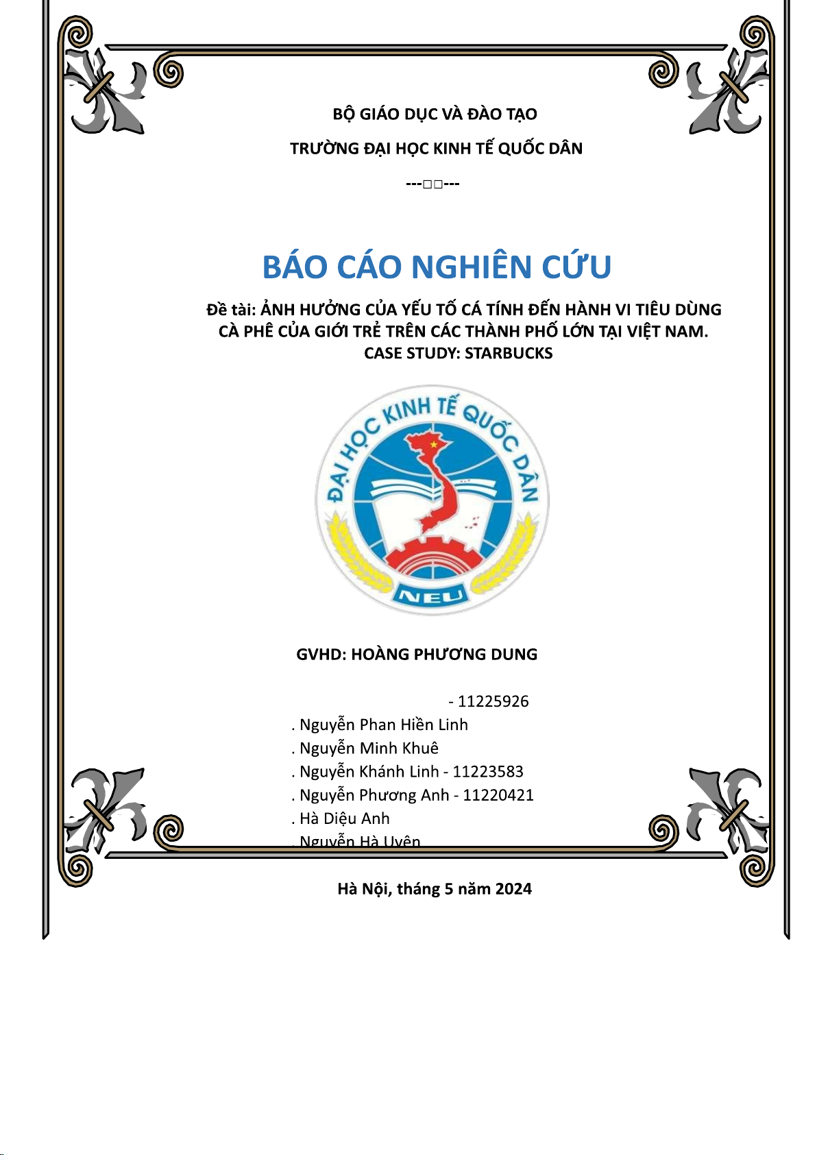 phê của giới trẻ tại Việt Nam" cùng áp dụng vào thương hiệu Starbucks cho thấy nghiên