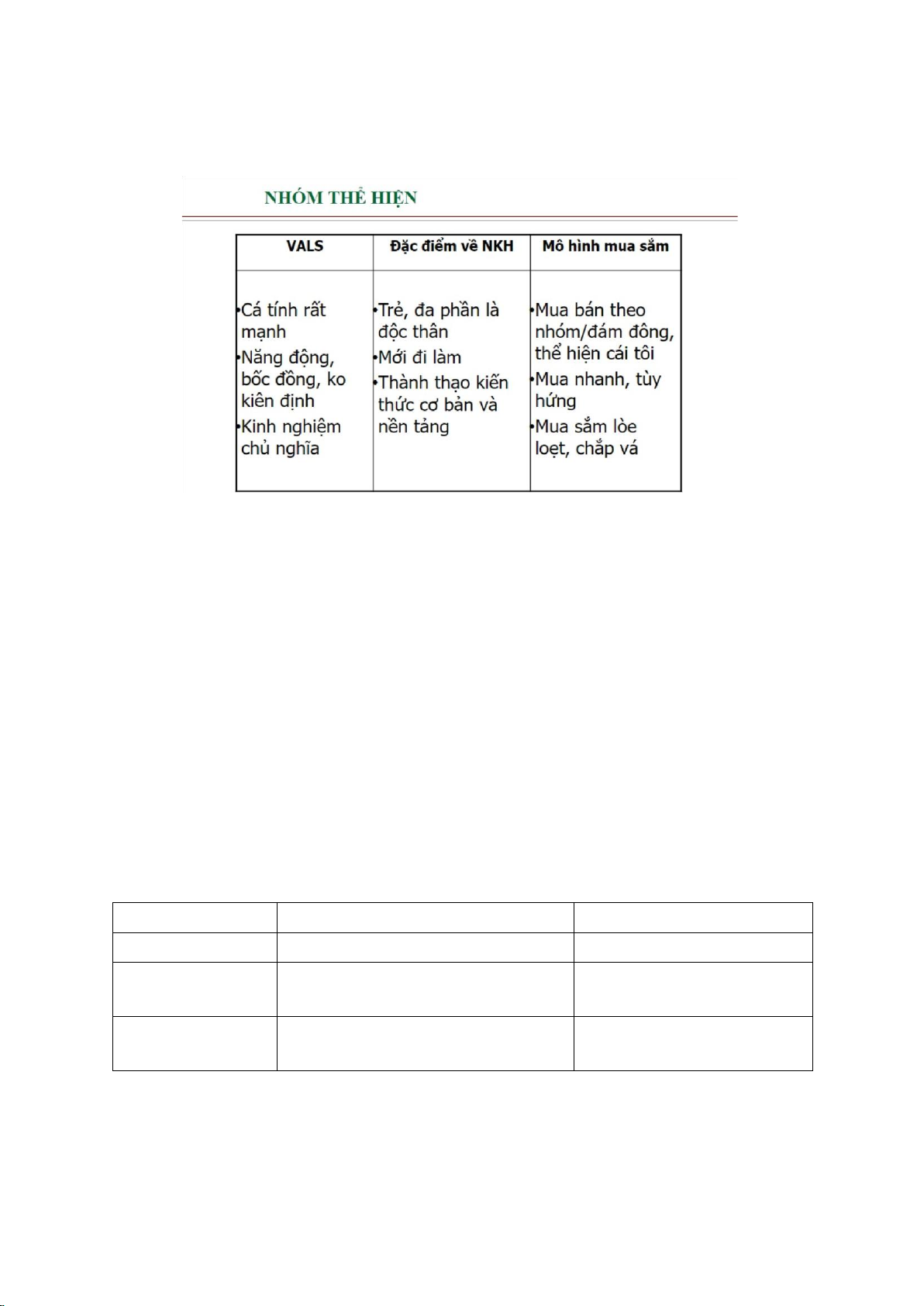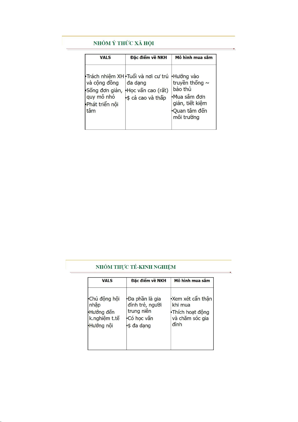 thấy, nhóm thực tế/kinh nghiệm không thể hiện điểm gì quá khác biệt so với lý thuyết VALS đã đề ra.