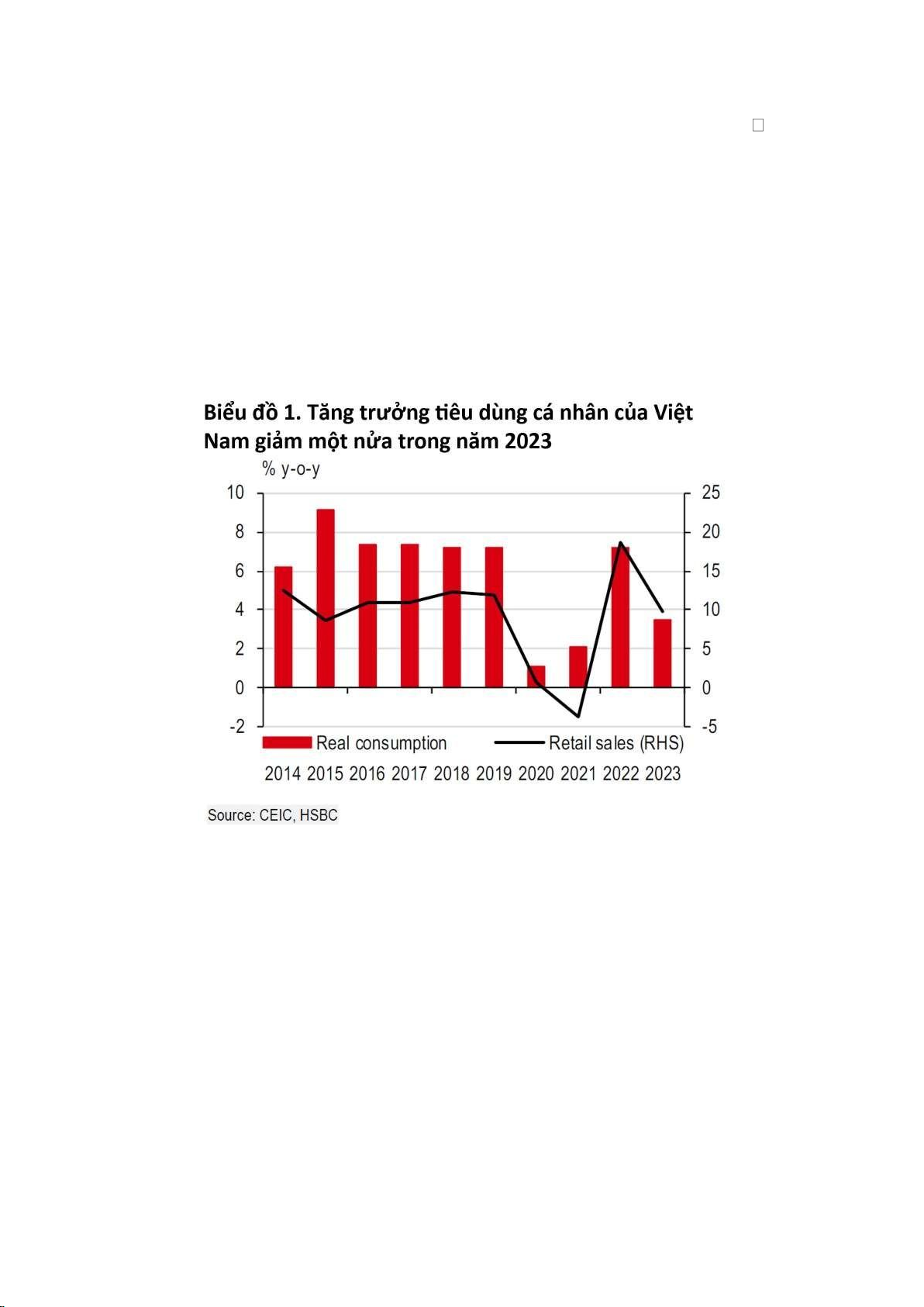 Tăng trưởng tiêu dùng cá nhân ở Việt Nam năm 2023 (theo CEIC, HSBC) lOMoAR cPSD| 61224927