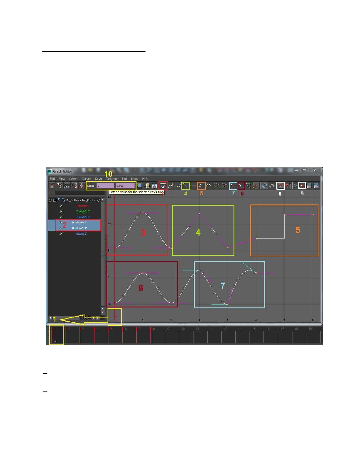 Chi Tiết Về Graph Editor : Những Nċt Nhĉ màu vàng là các Nċt Curve ược tạo