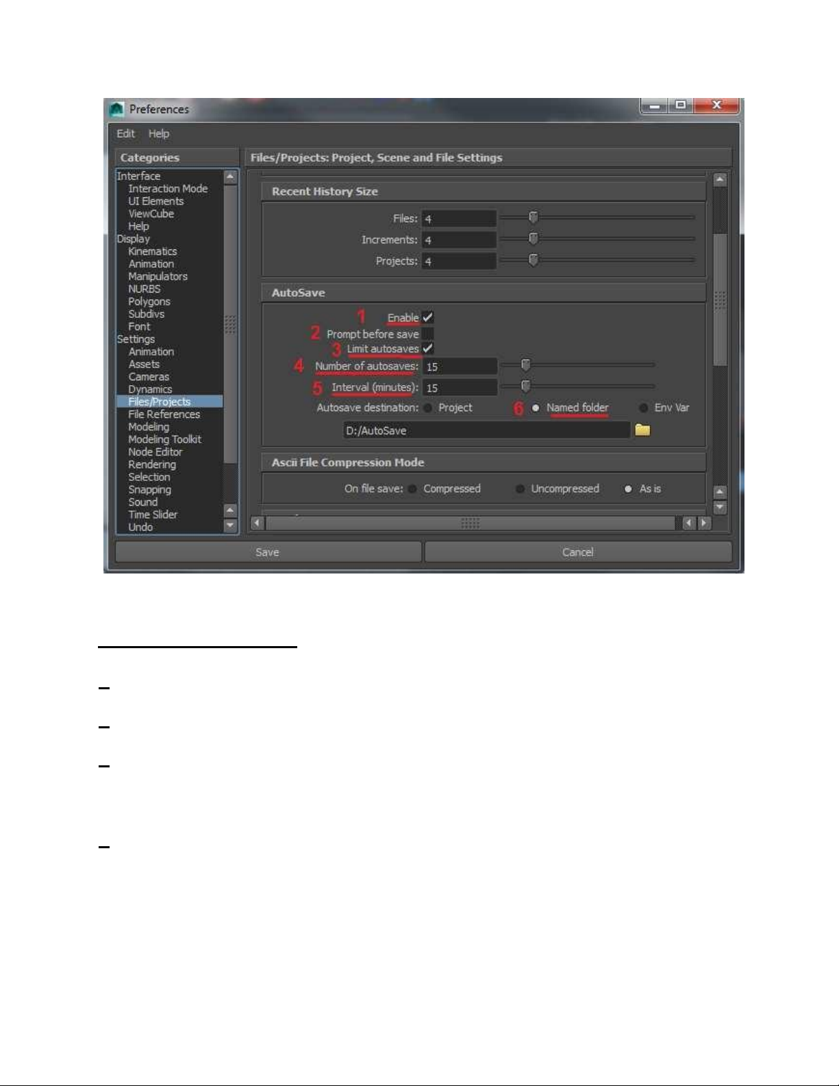 3 – 4 Giới hạn chu kì Save bao nhiêu file backup (nếu chọn 15 ,ta sẽ ược 15 file maya