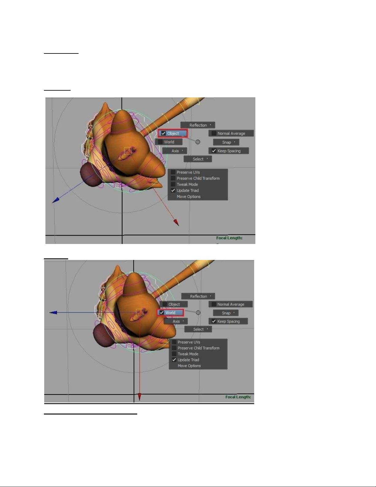 cho phép ta lựa chọn hướng Di chuyển, Xoay theo chiều của Vật Thể hoặc theo chiều của Maya.