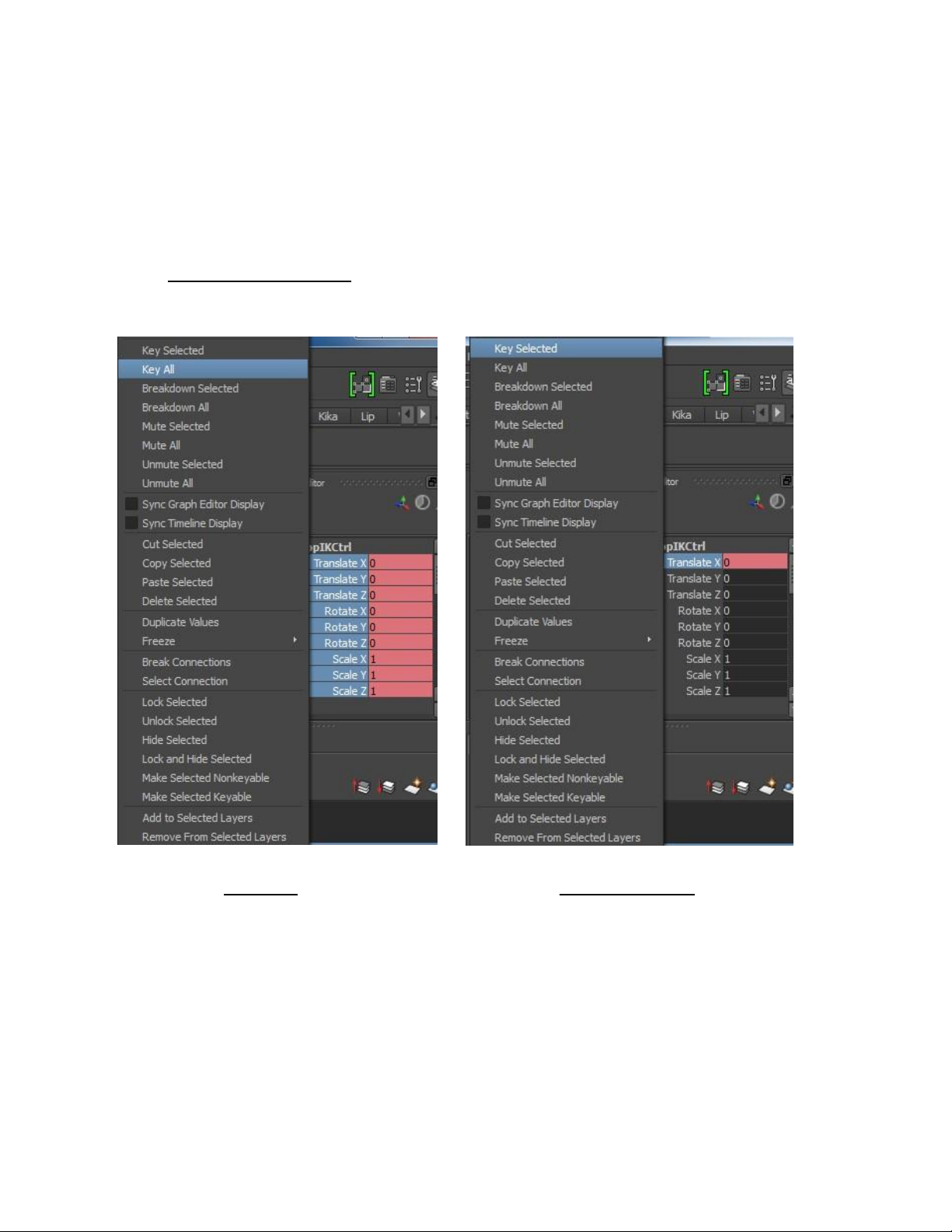 - Cách 1 : Save key tất cả các trục và thuộc tính hổ trợ .