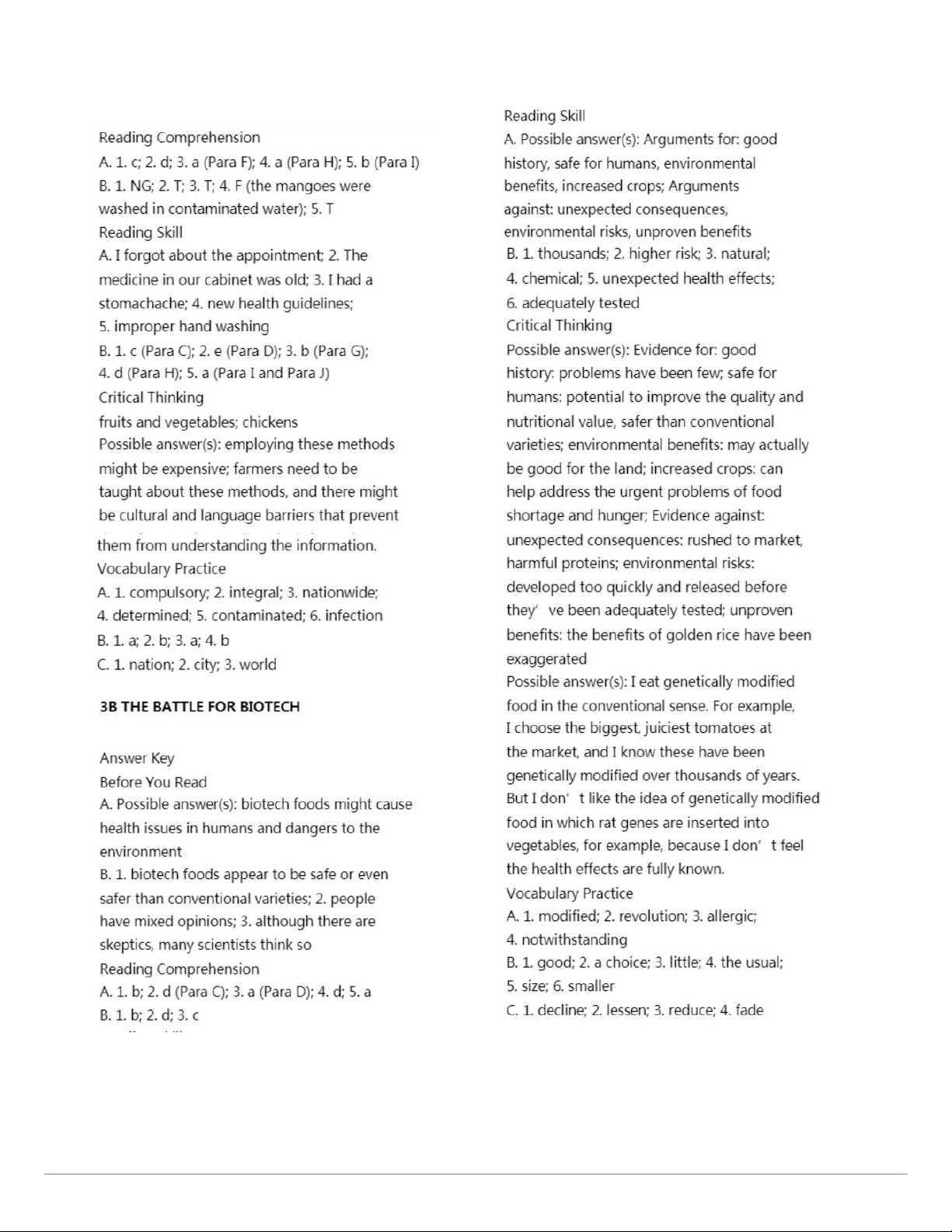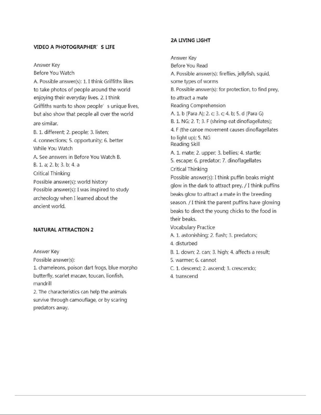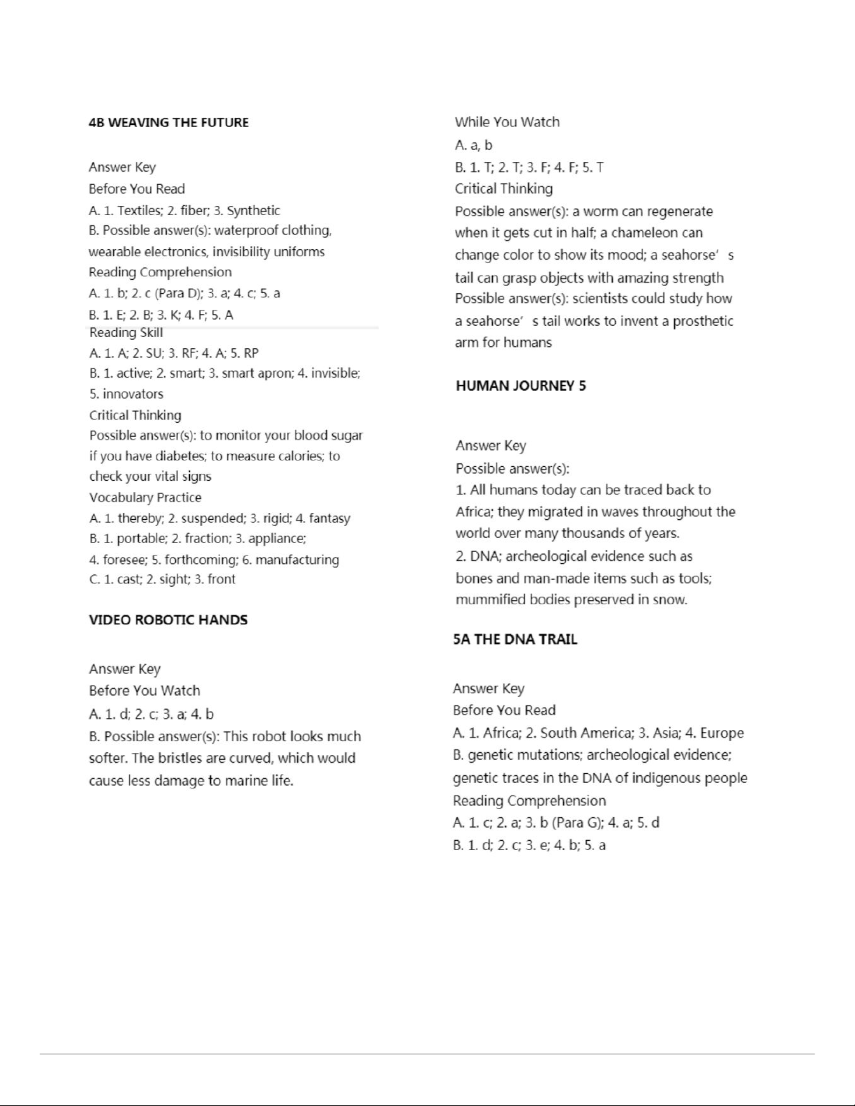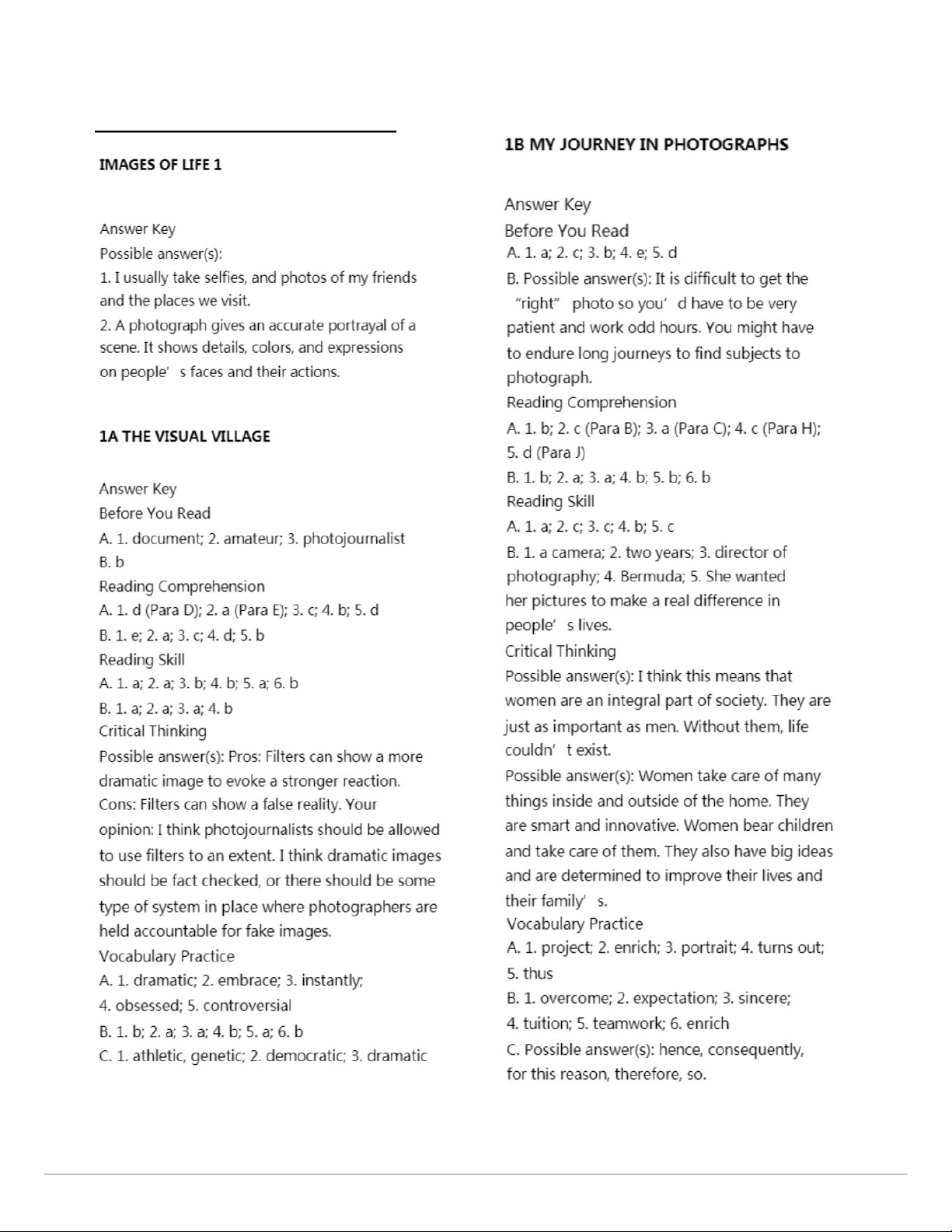 Answer Key for Activities and Skills | English 1 (TĐT) | Đại học Tôn Đức Thắng