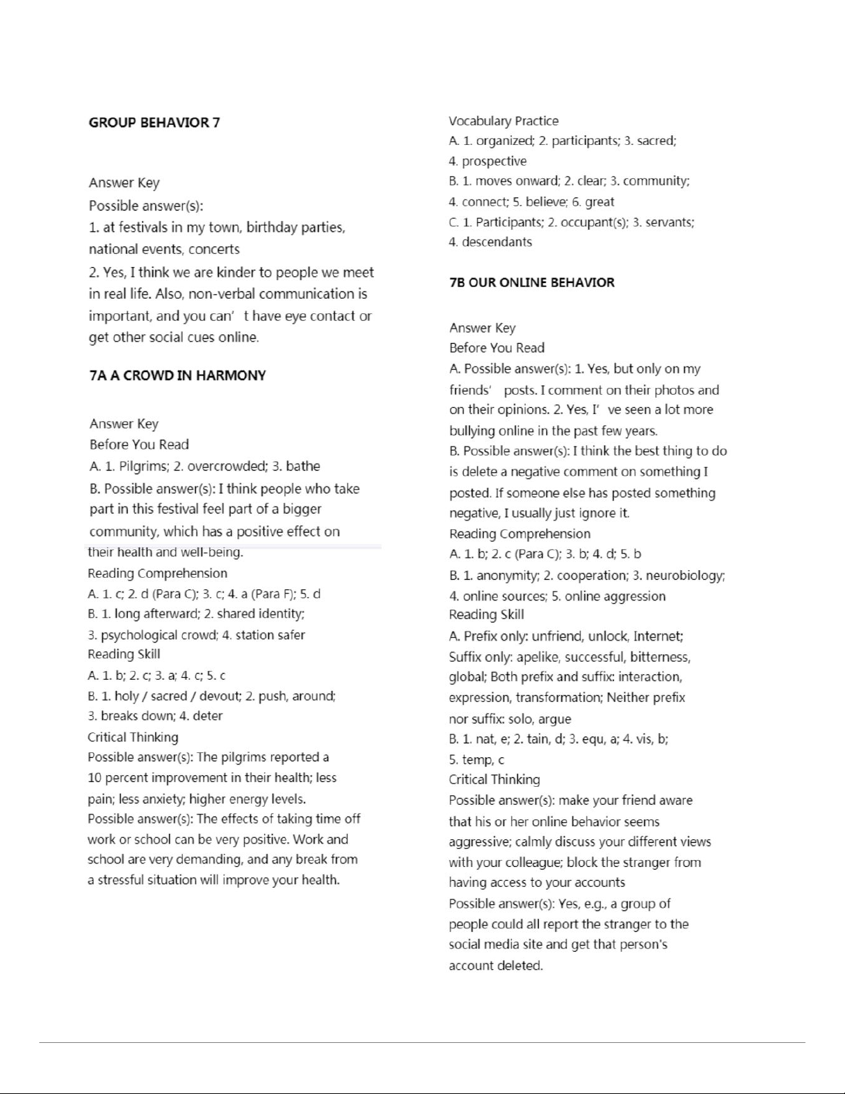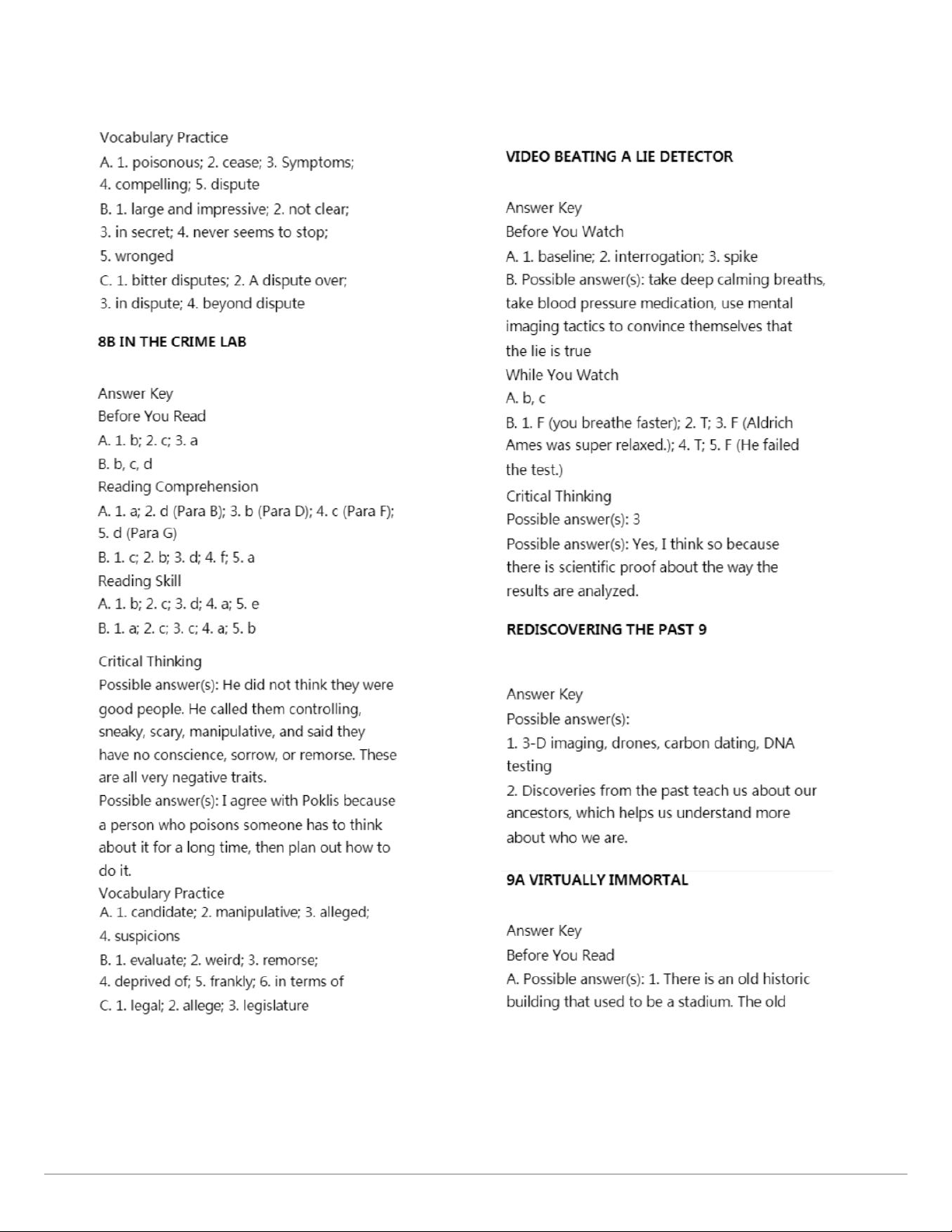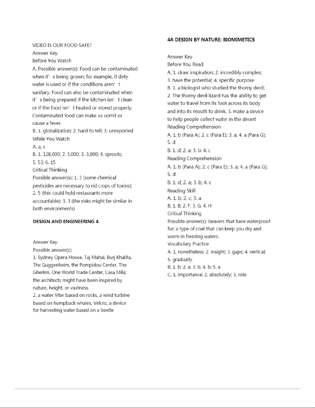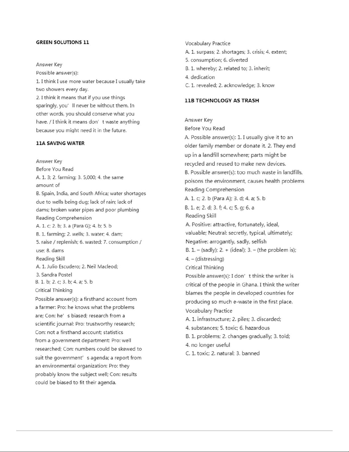 Answer Key for Activities and Skills | English 1 (TĐT) | Đại học Tôn Đức Thắng