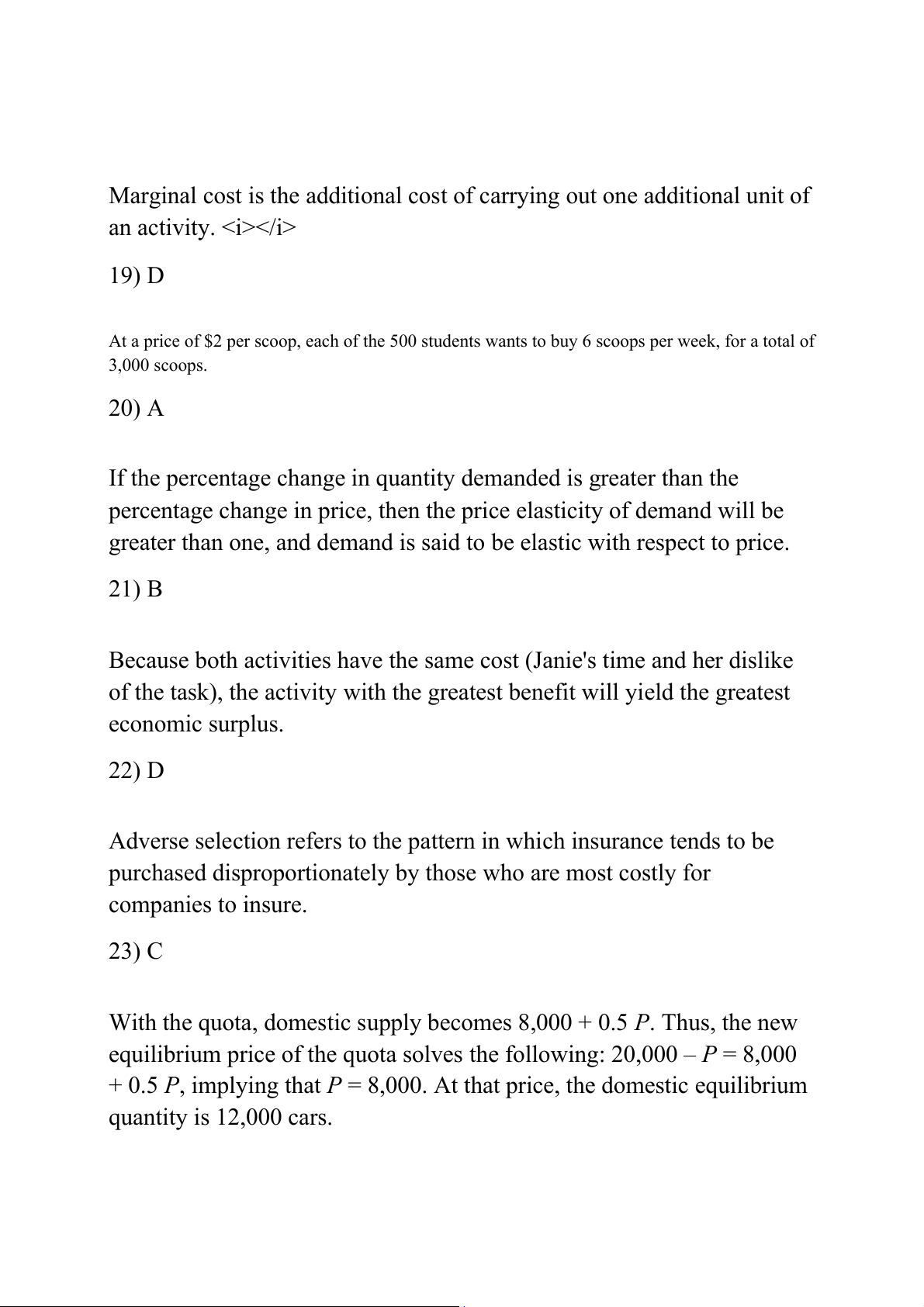 + 0.5 P, implying that P = 8,000. At that price, the domestic equilibrium quantity is 12,000 cars. 24) C