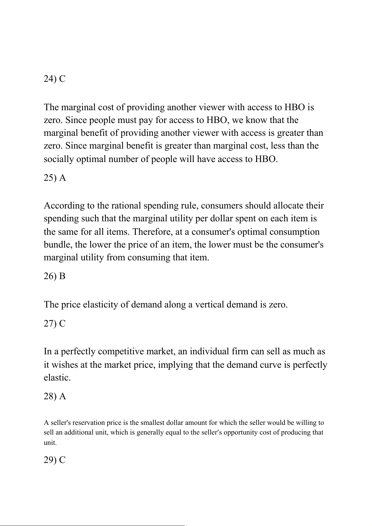 sell an additional unit, which is generally equal to the seller’s opportunity cost of producing that unit. 29) C